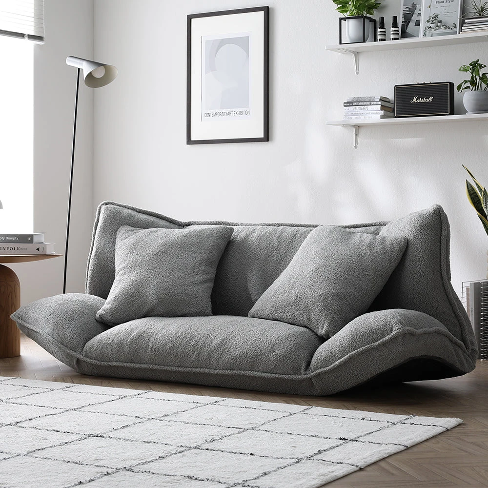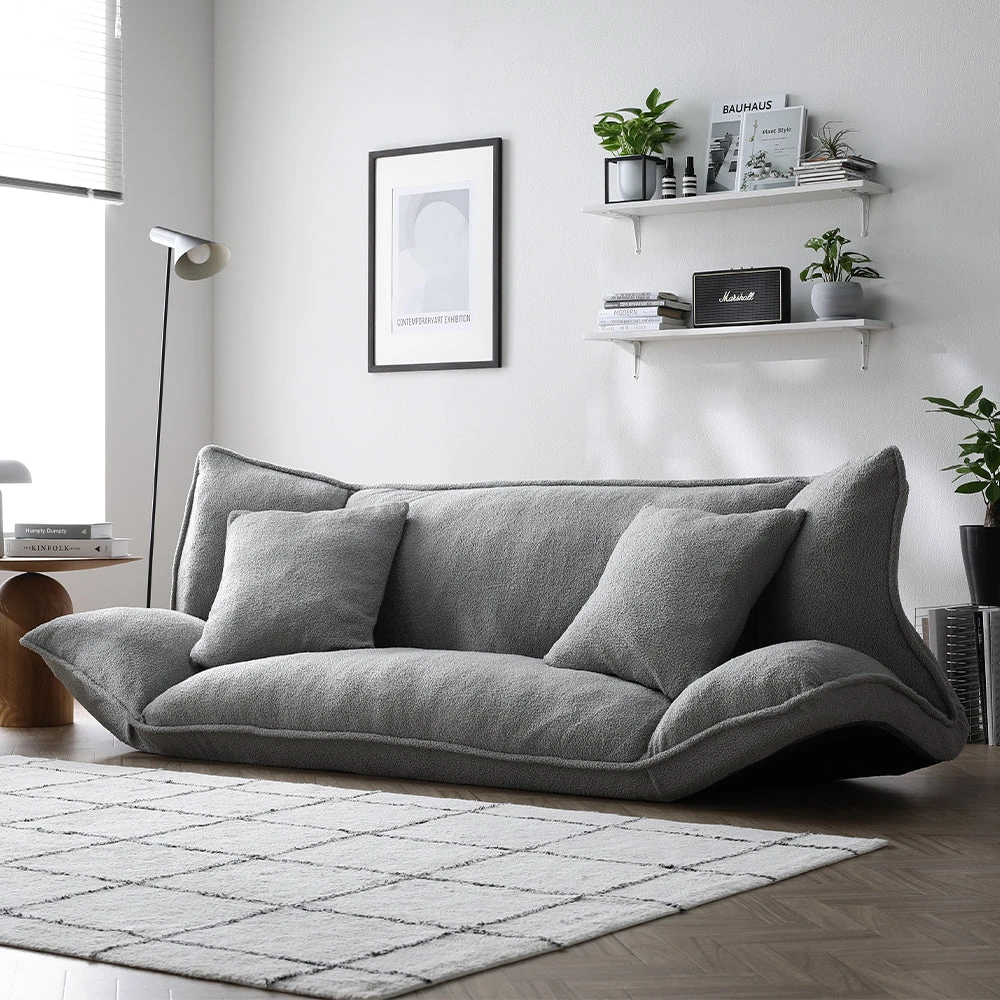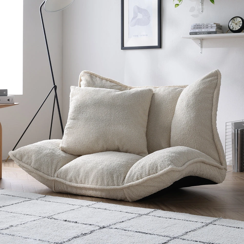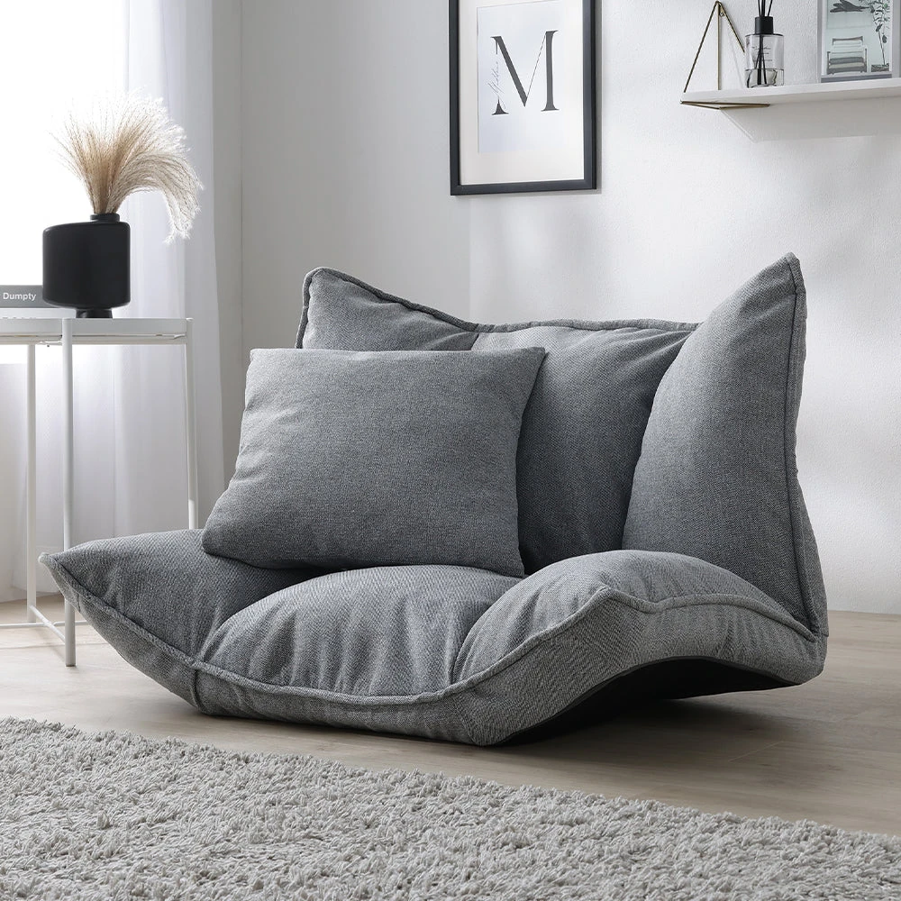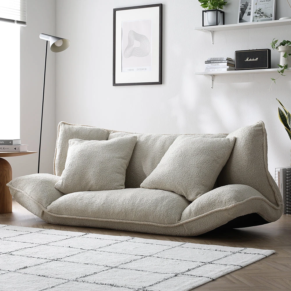 1部屋の形に合わせて形を変え暮らしに寄り添うファブリックソファ ベージュ×ブラック オットマン単品