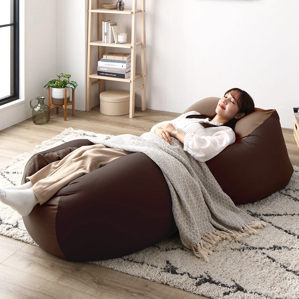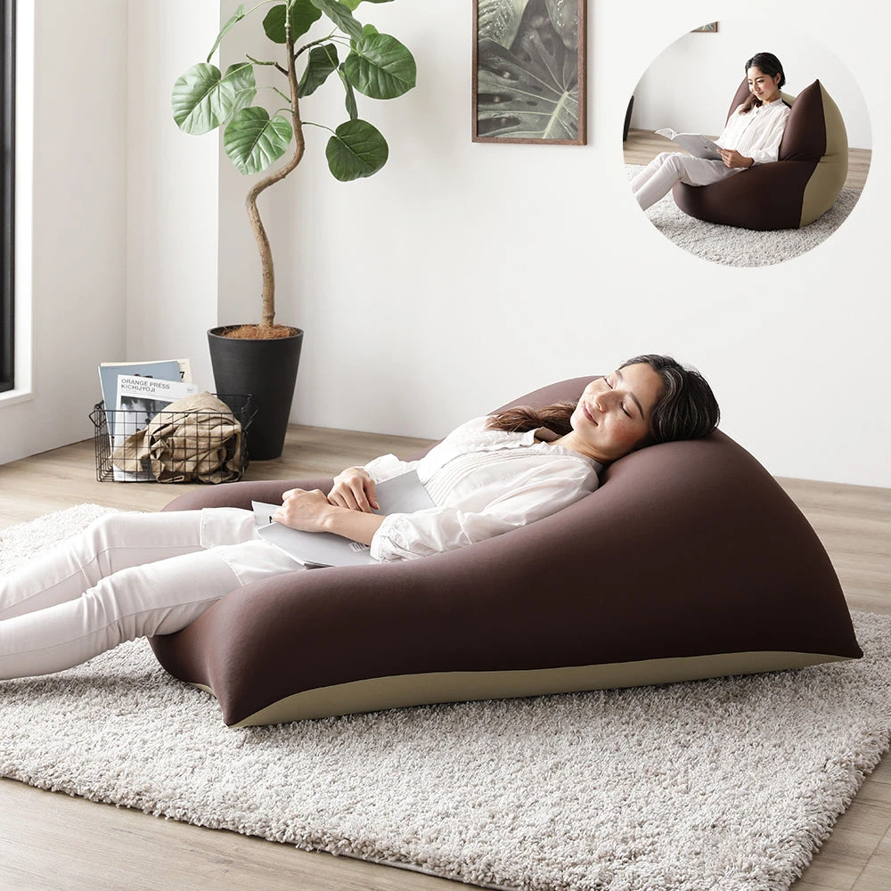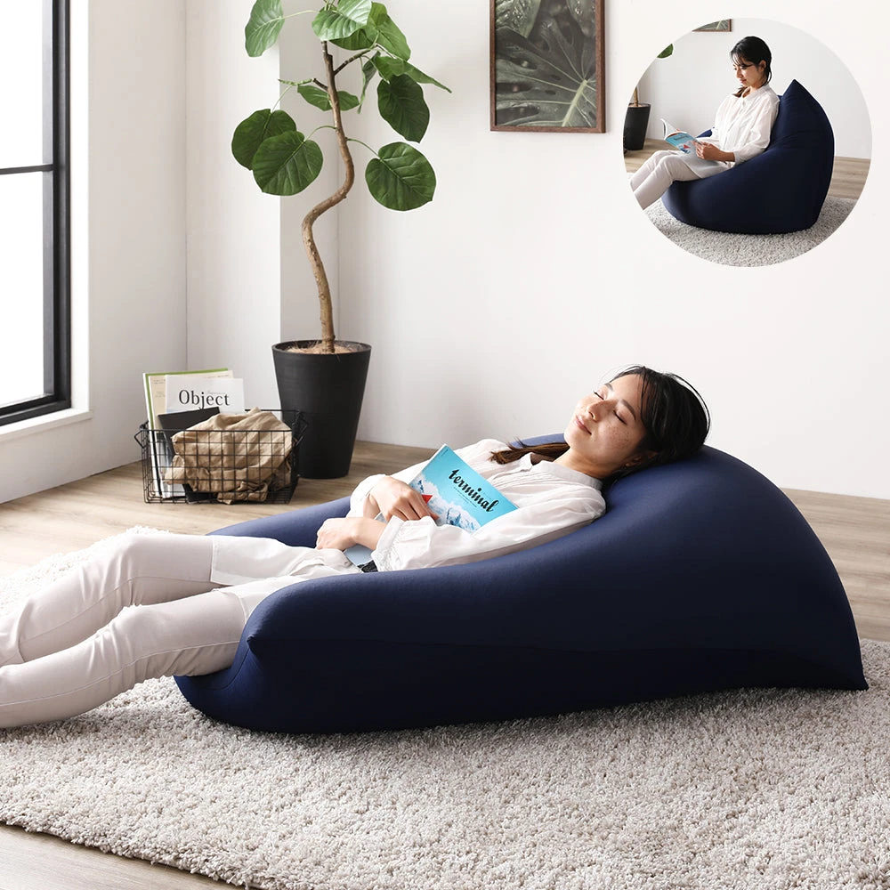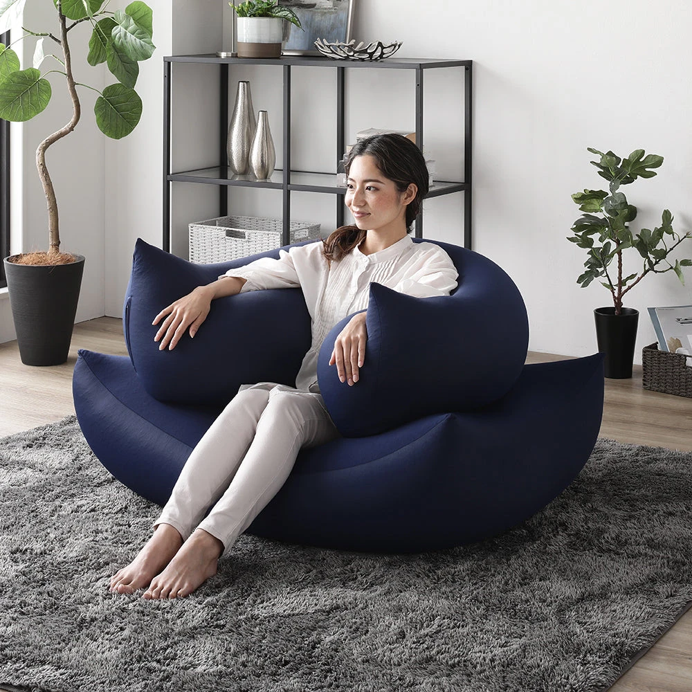 1極小ビーズで体に沿う、静かなリラックス感のビーズクッション ブラウン・ネイビー 2個セット