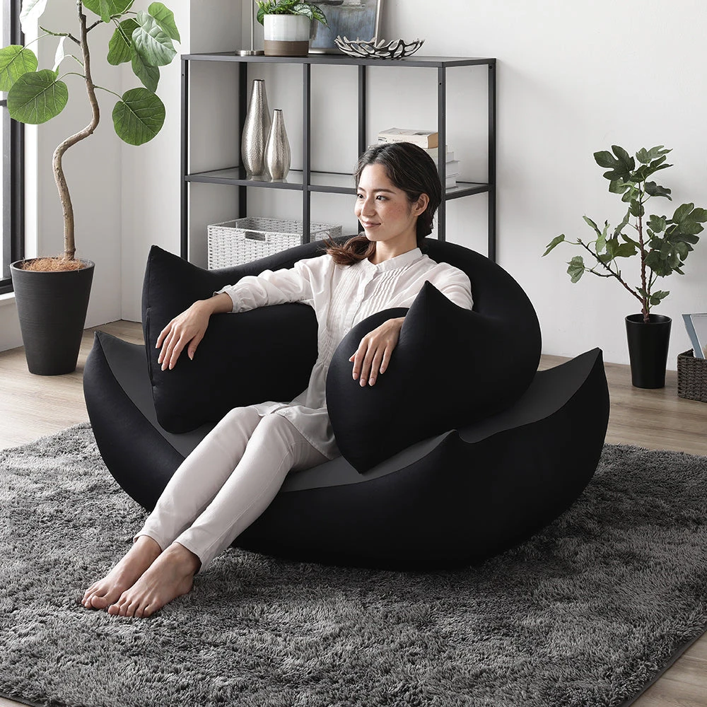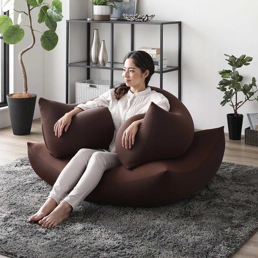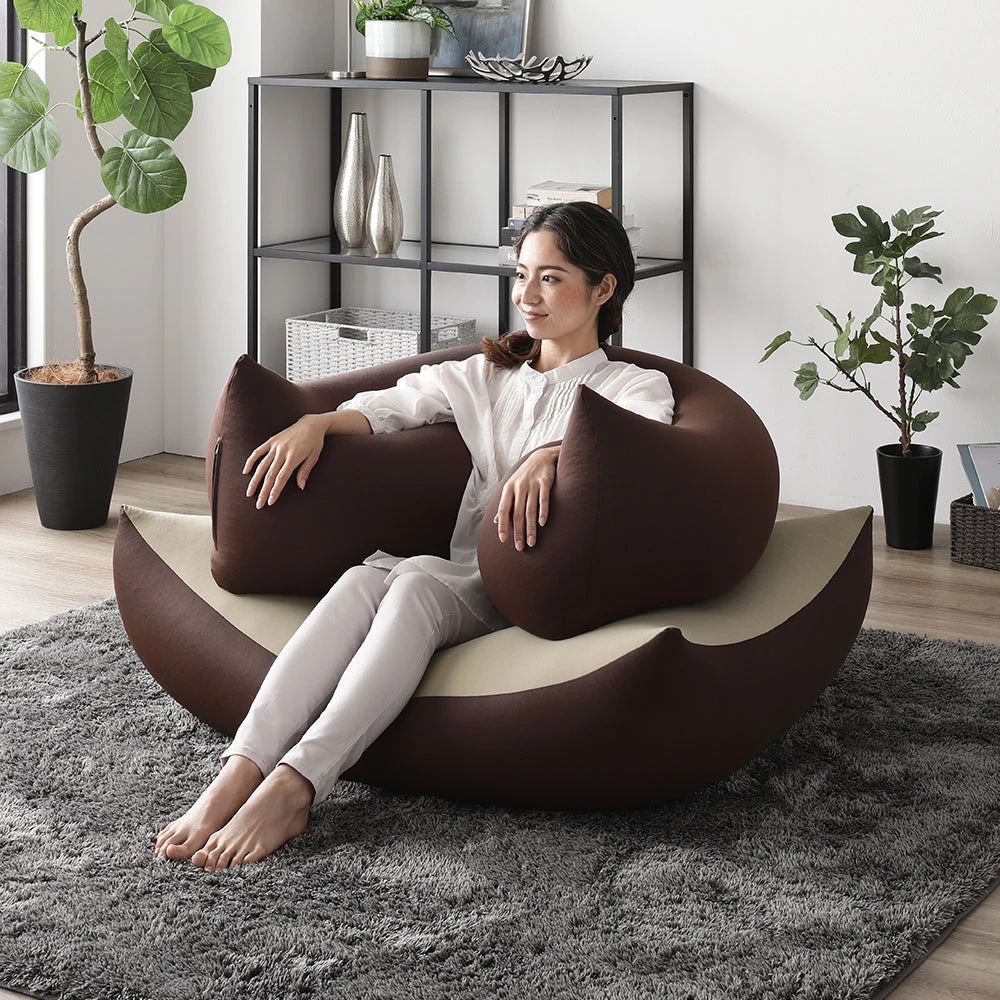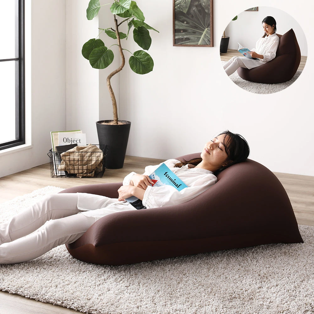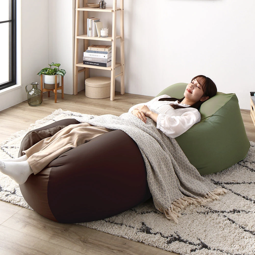 1極小ビーズで体に沿う、静かなリラックス感のビーズクッション ブラウン・ネイビー 2個セット