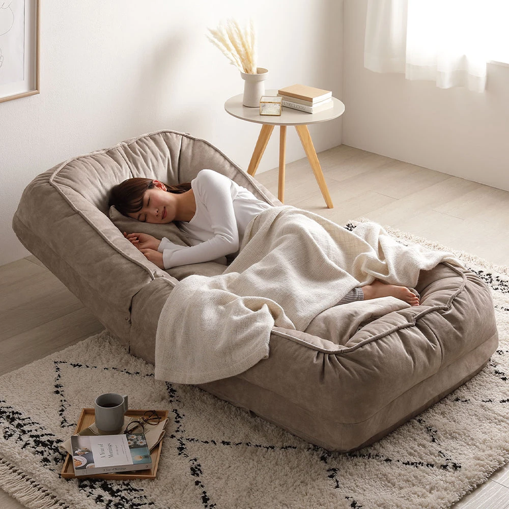 姿勢に合わせて自在に切替できる3WAYのファブリックソファ 1人掛け グレージュ