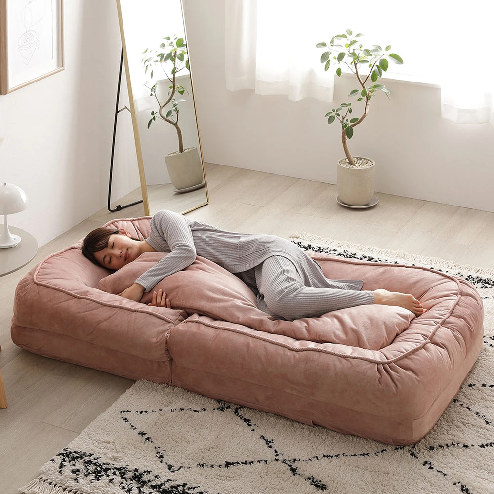 姿勢に合わせて自在に切替できる3WAYのファブリックソファ 1人掛け ダスティピンク