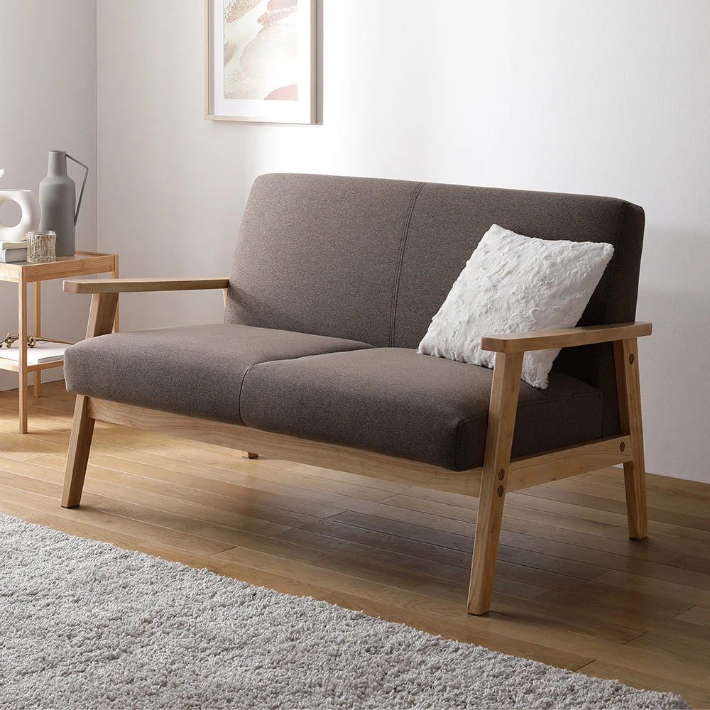木の温もりと直線美で空間を整える北欧風のファブリックソファ モカブラウン 2人掛け