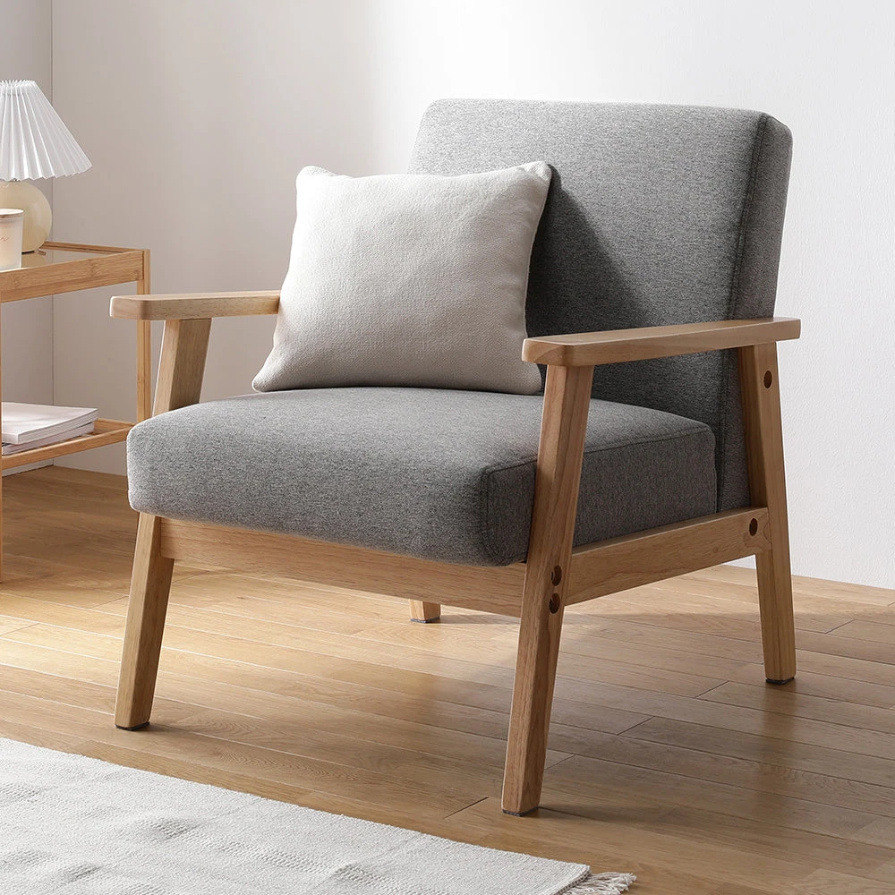 木の温もりと直線美で空間を整える北欧風のファブリックソファ アーバングレー 1人掛け
