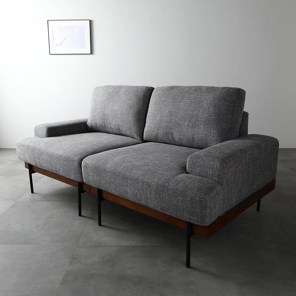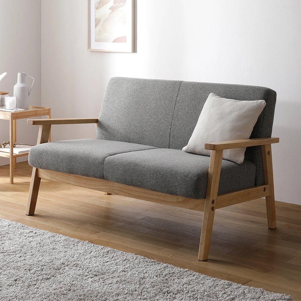 木の温もりと直線美で空間を整える北欧風のファブリックソファ アーバングレー 2人掛け