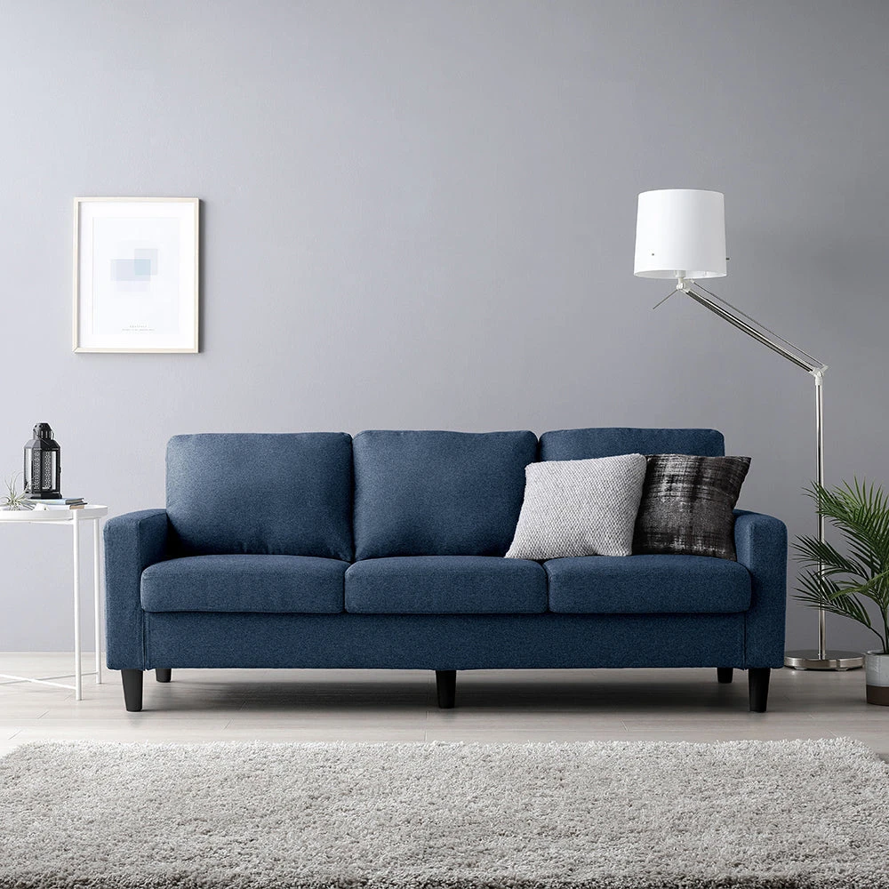 7洗濯できるカバーで長く清潔を保つ、手入れ簡単なファブリックソファ ネイビー 3人掛け単品