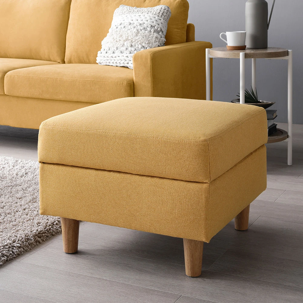 8洗濯できるカバーで長く清潔を保つ、手入れ簡単なファブリックソファ マスタード オットマン単品