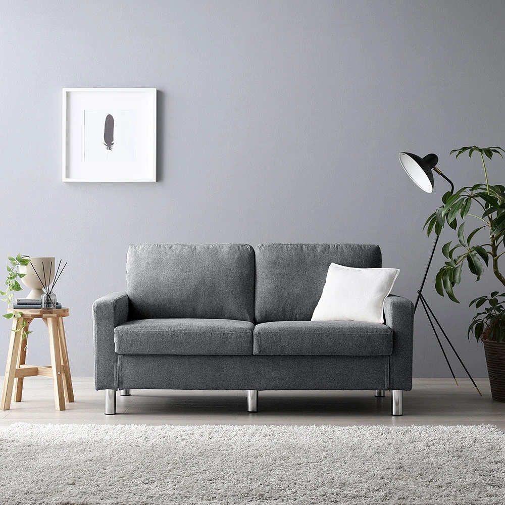 4肘のない開放設計で動線を保ち快適にくつろげるファブリックソファ 2人掛け グレー 2人掛け単品