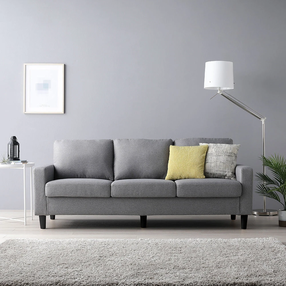 10洗濯できるカバーで長く清潔を保つ、手入れ簡単なファブリックソファ グレー 3人掛け単品