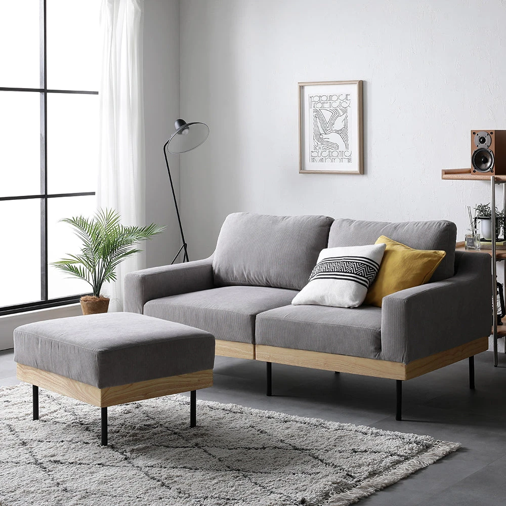 洗えて清潔を保てるカバーリングと弾む座り心地のファブリックソファ 2人掛け+オットマン コーディロイ グレージュ ソファ+オットマン(2人掛け・2.5人掛け)