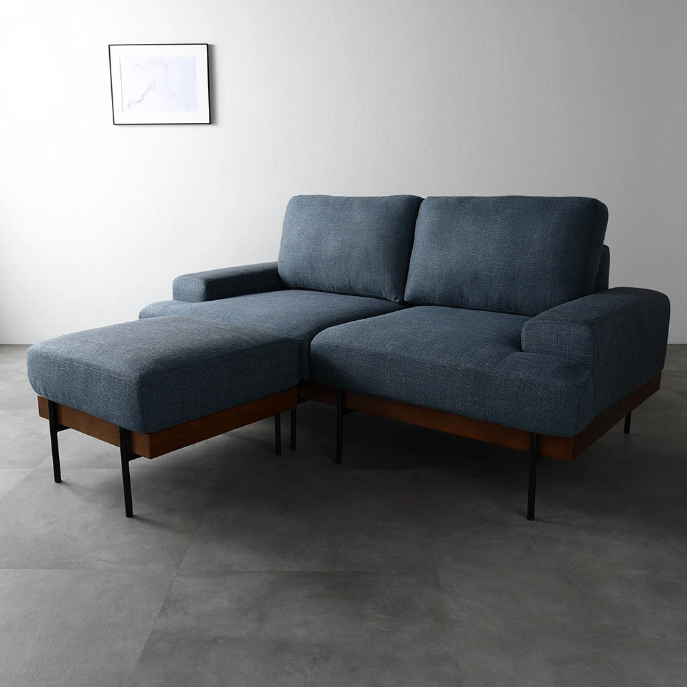 洗えて替えられる清潔設計、暮らしに寄り添うファブリックソファ ネイビー オットマン単品