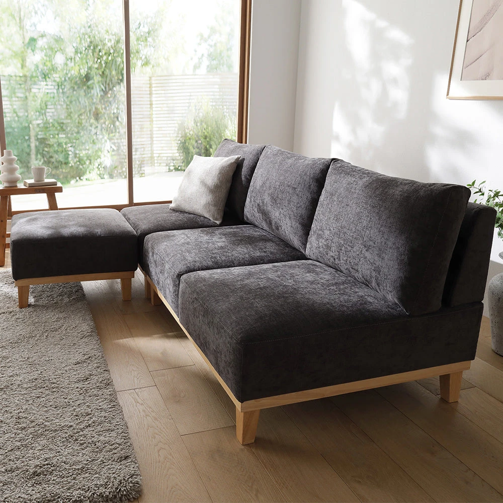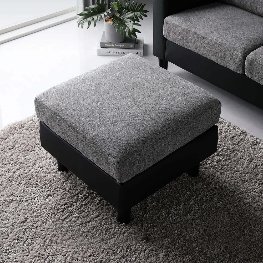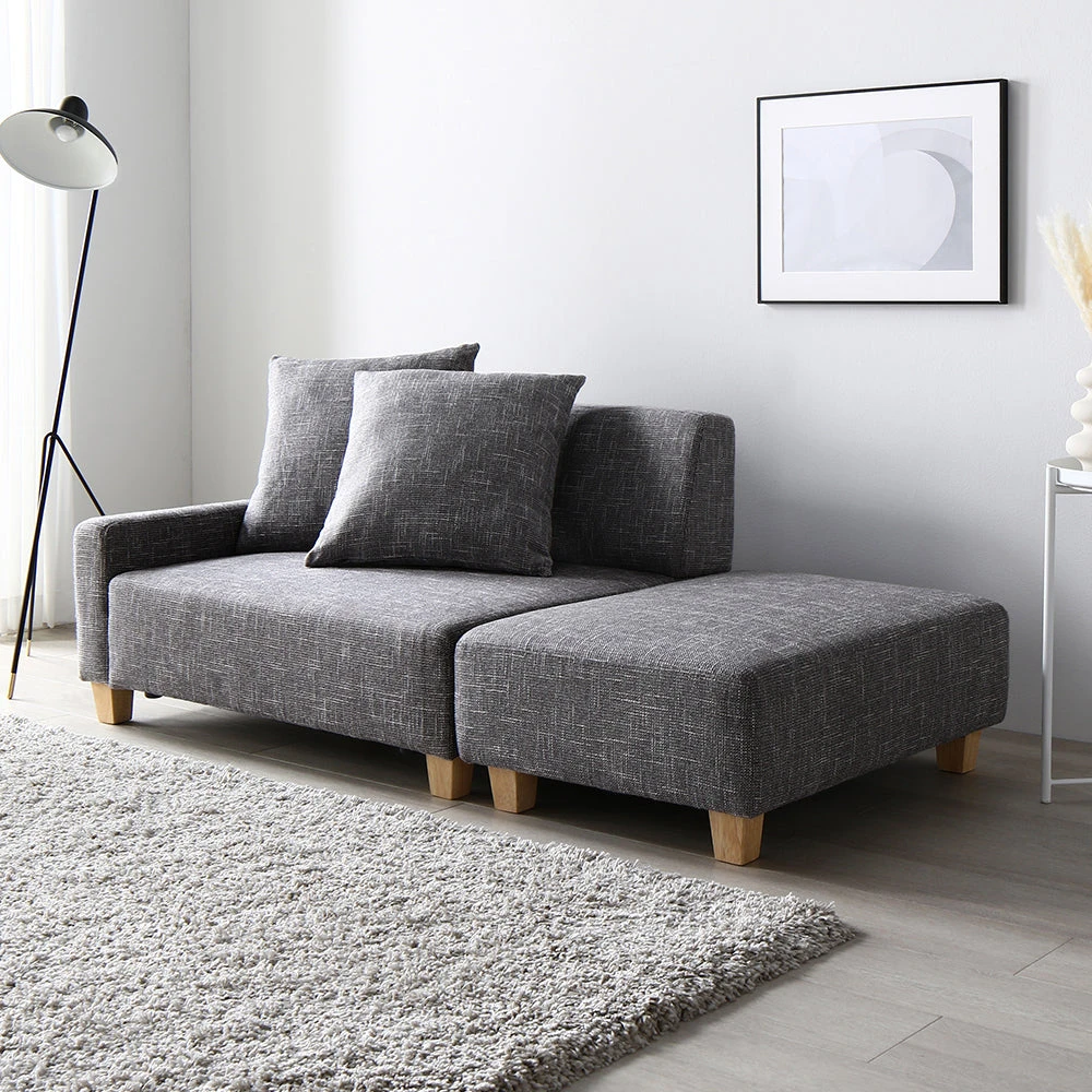部屋の形に合わせて形を変え暮らしに寄り添うファブリックソファ グレー×ブラック オットマン単品