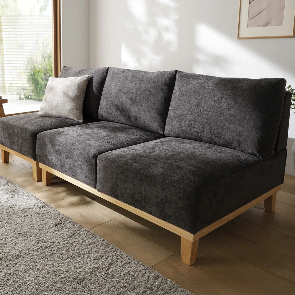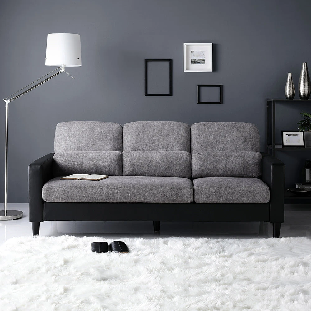 部屋の形に合わせて形を変え暮らしに寄り添うファブリックソファ グレー×ブラック 3人掛け単品