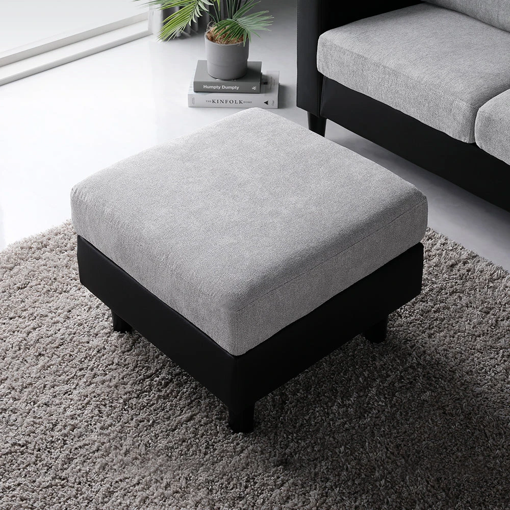部屋の形に合わせて形を変え暮らしに寄り添うファブリックソファ ライトグレー×ブラック オットマン単品