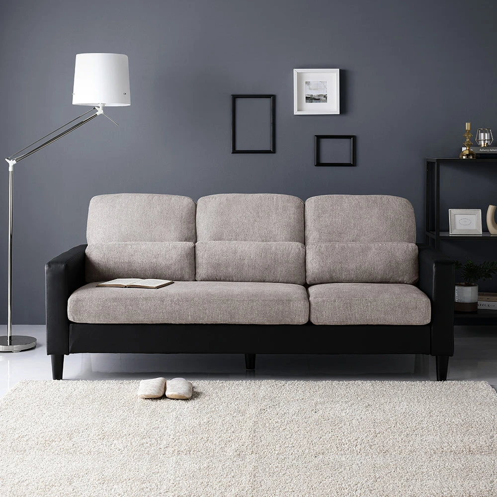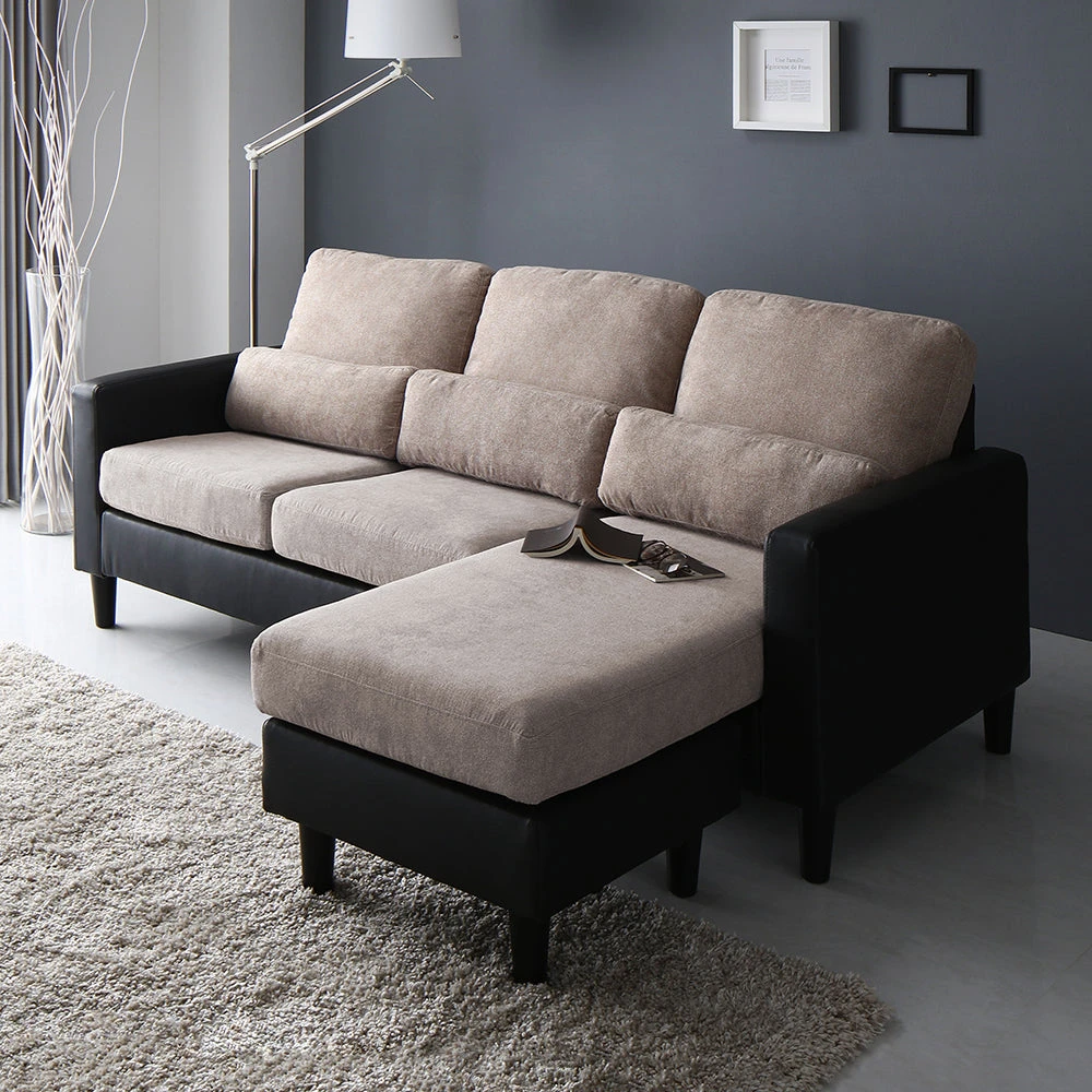 部屋の形に合わせて形を変え暮らしに寄り添うファブリックソファ ベージュ×ブラック 3人掛け単品