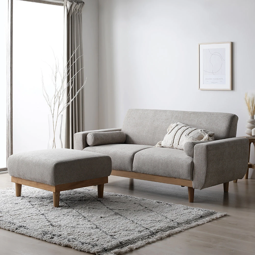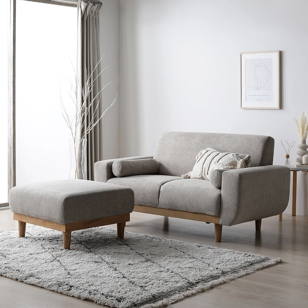 肌ざわりと通気に優れ日常が整うファブリックソファ 2人掛け グレージュ 2人掛け+オットマン