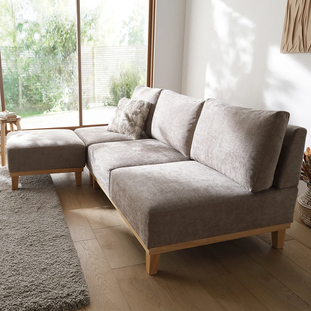 肘のない開放設計で動線を保ち快適にくつろげるファブリックソファ Default Title グレージュ オットマン単品