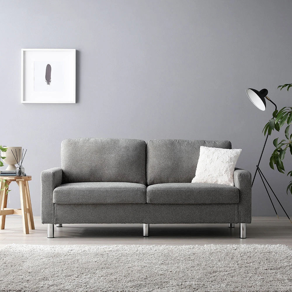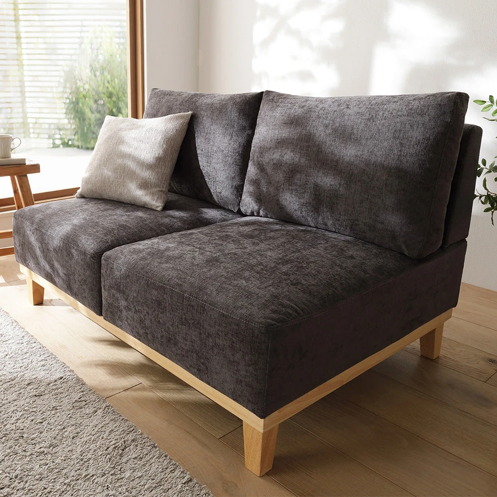 肘のない開放設計で動線を保ち快適にくつろげるファブリックソファ 2人掛け グレー 2人掛け単品