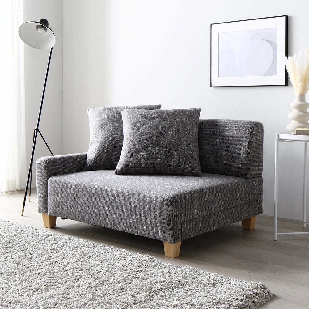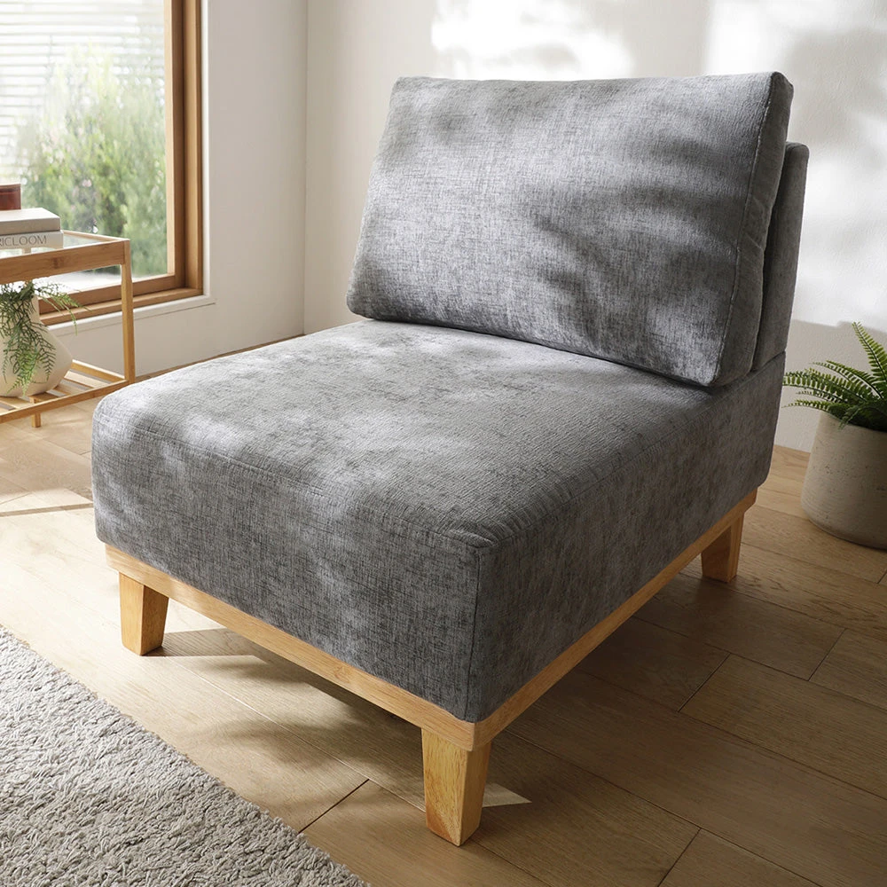 肘のない開放設計で動線を保ち快適にくつろげるファブリックソファ 1人掛け グレー 1人掛け単品