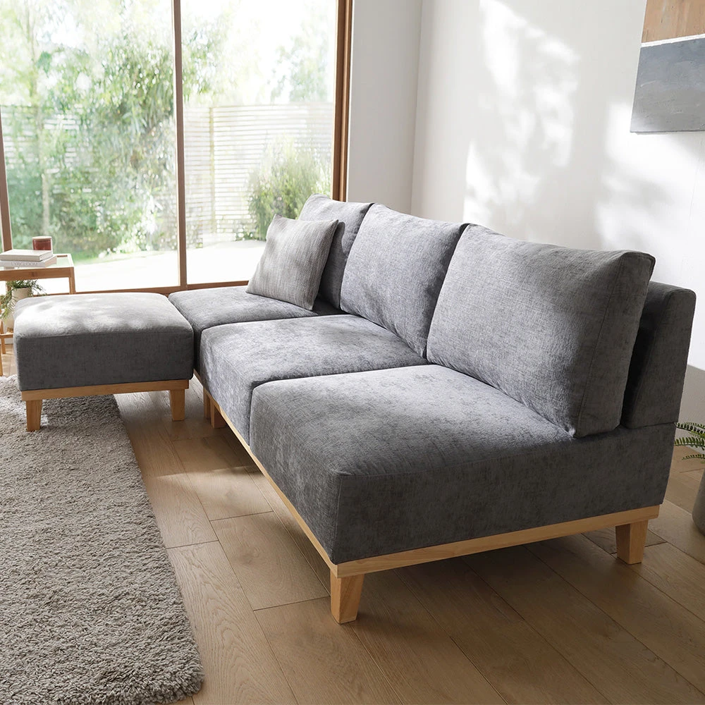 間取りに合わせて自在に組み替え暮らしに沿うファブリックソファ アッシュグレー 3人掛け+オットマン+テーブル