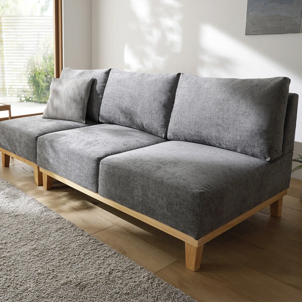 肘のない開放設計で動線を保ち快適にくつろげるファブリックソファ 3人掛け グレー 3人掛け単品