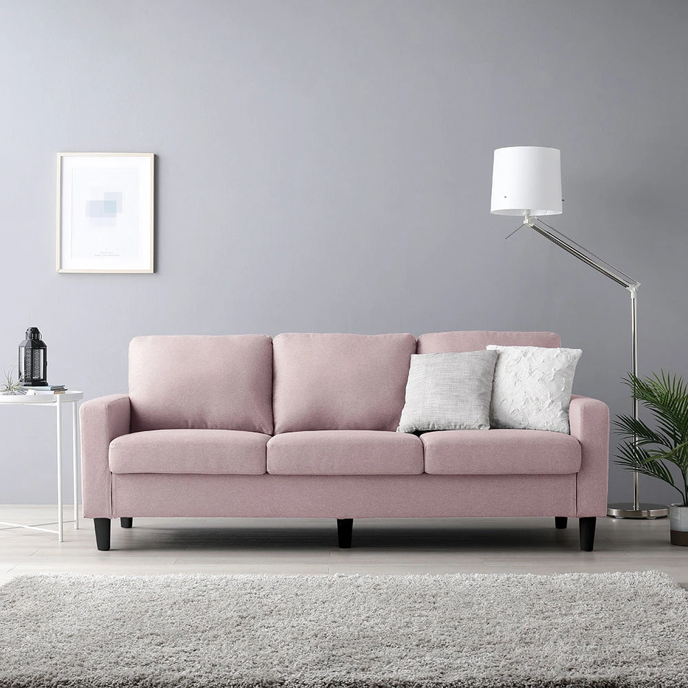 5洗濯できるカバーで長く清潔を保つ、手入れ簡単なファブリックソファ ミスティピンク 3人掛け単品