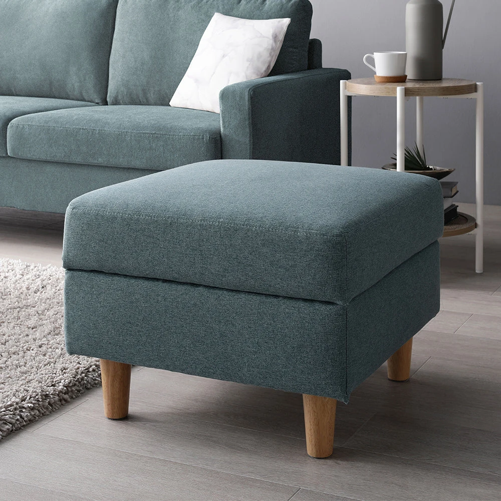 6洗濯できるカバーで長く清潔を保つ、手入れ簡単なファブリックソファ ダスティブルー オットマン単品