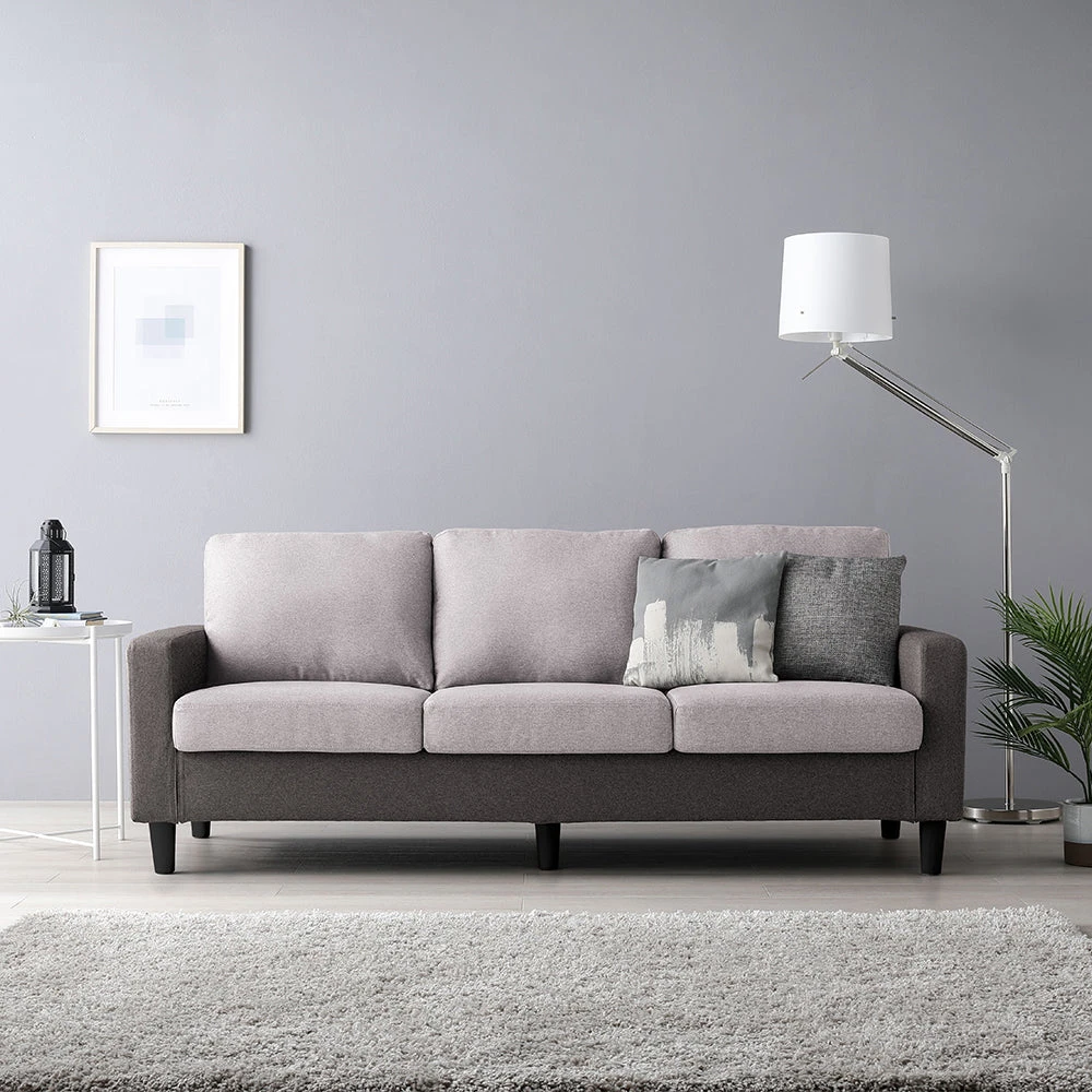 部屋の形に合わせて形を変え暮らしに寄り添うファブリックソファ ライトグレー×ブラック 3人掛け単品