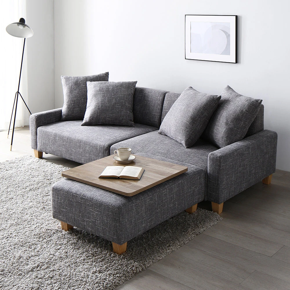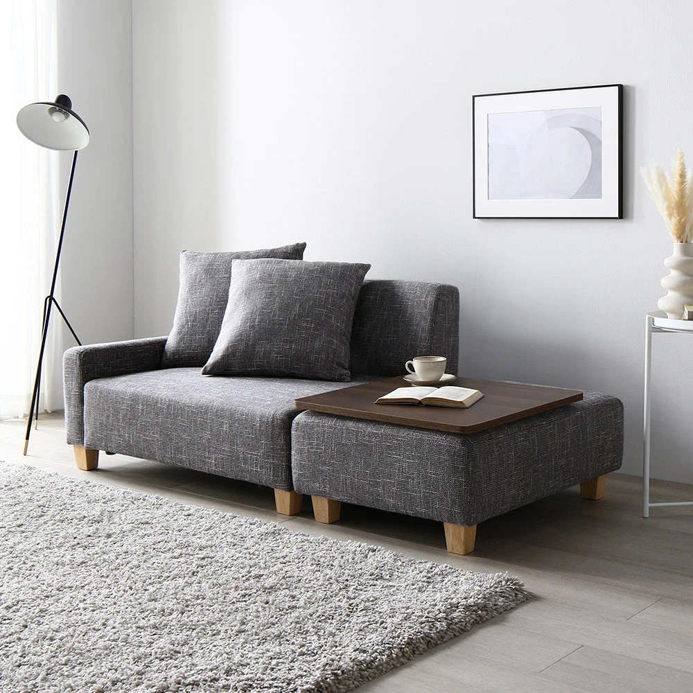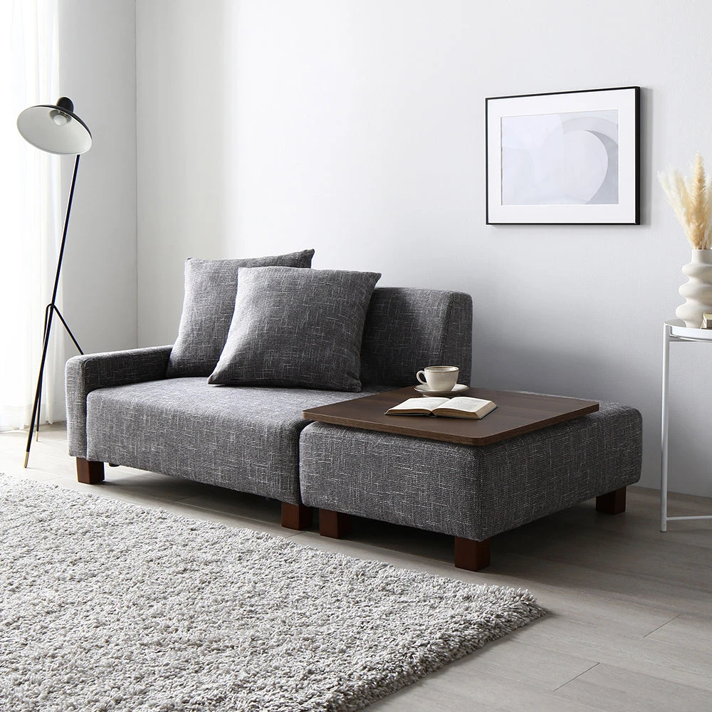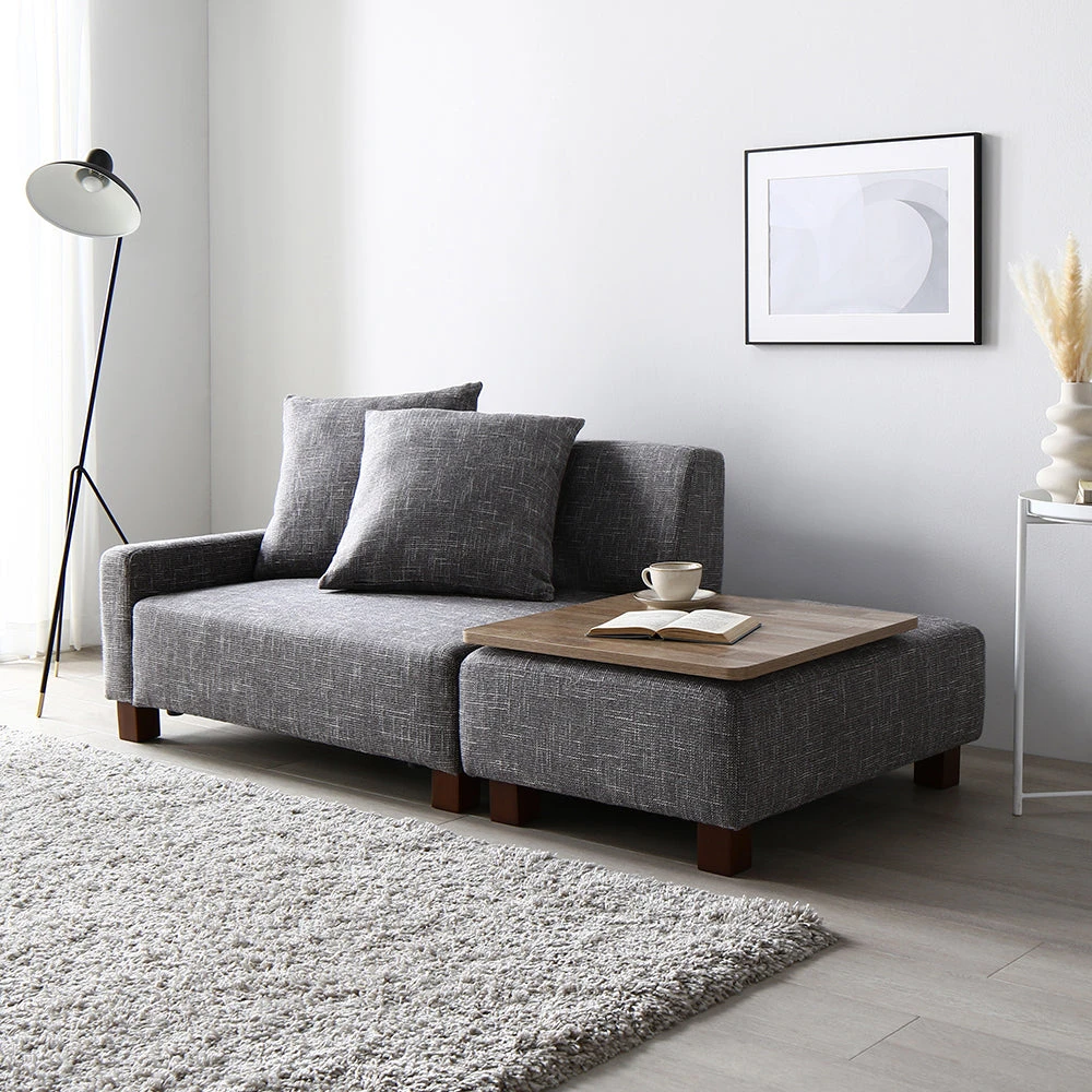 間取りに合わせて自在に組み替え暮らしに沿うファブリックソファ アッシュグレー 1.5人掛け+オットマン+テーブル