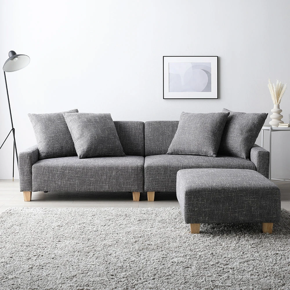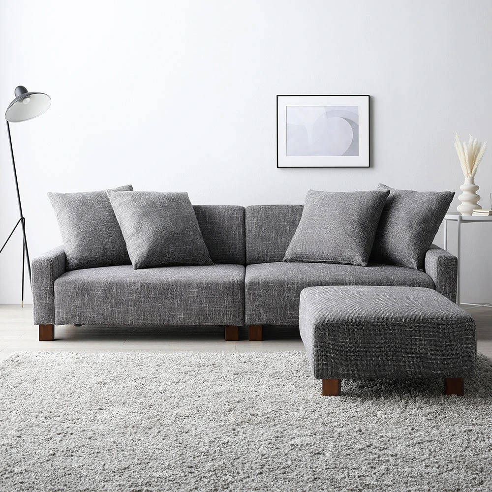 間取りに合わせて自在に組み替え暮らしに沿うファブリックソファ アッシュグレー 3人掛け+オットマン