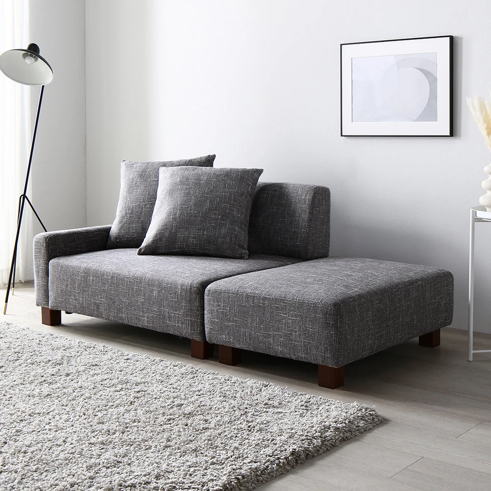 間取りに合わせて自在に組み替え暮らしに沿うファブリックソファ アッシュグレー 1.5人掛け+オットマン