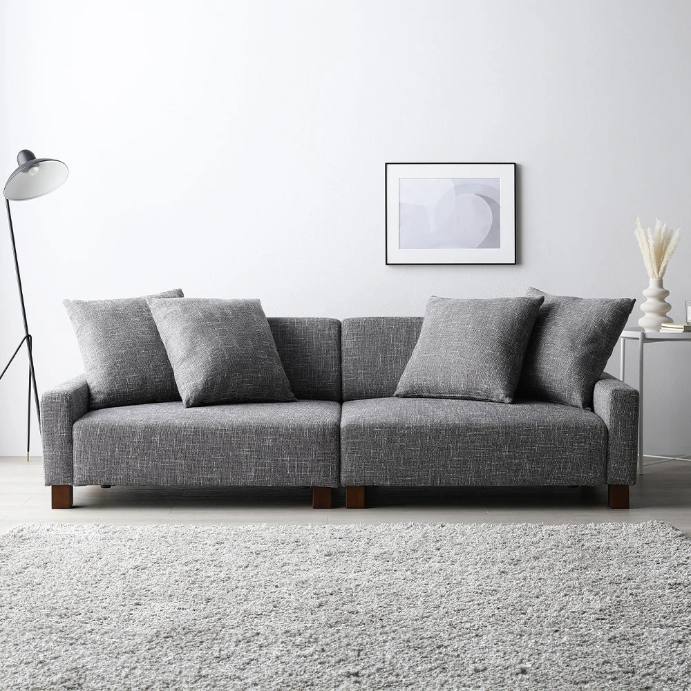 1洗濯できるカバーで長く清潔を保つ、手入れ簡単なファブリックソファ グレー 2.5人掛け単品