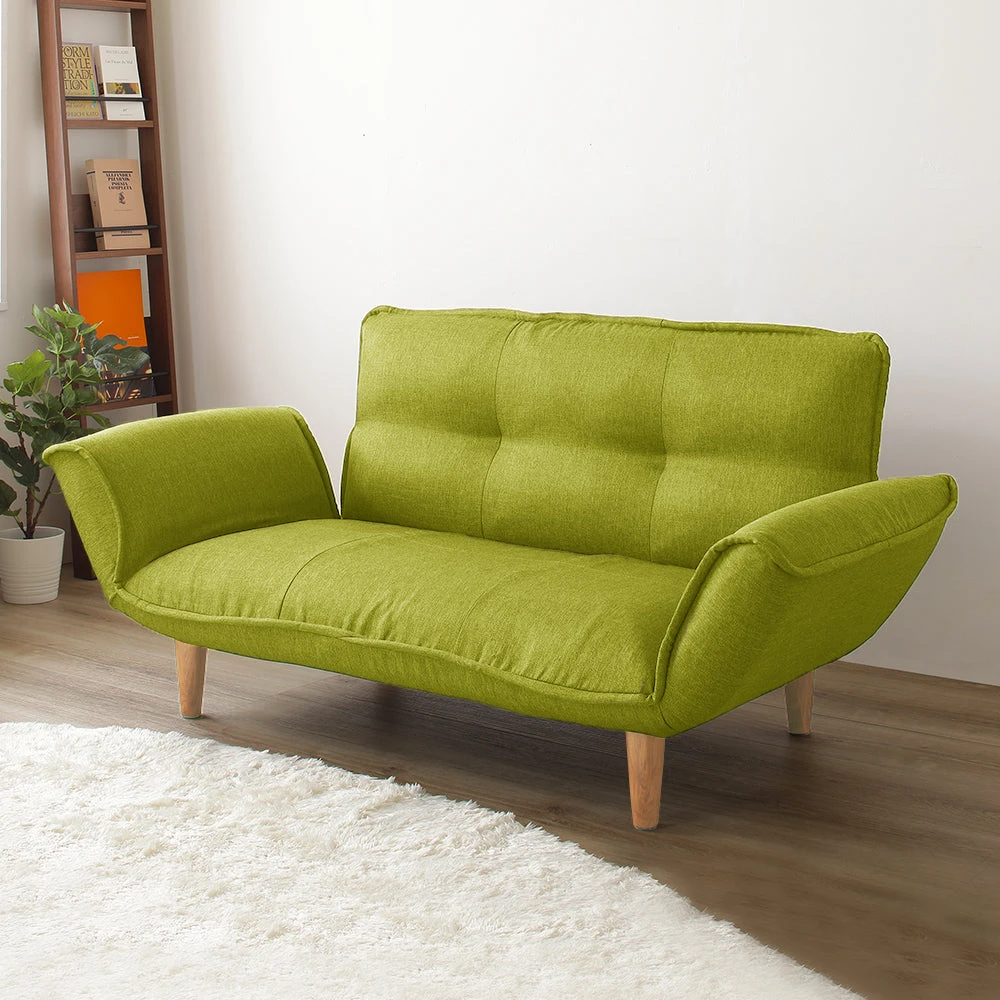 11静かに角度を変えて姿勢を整える日本製のレザーソファ コーデュロイ イエロー 2人掛け単品