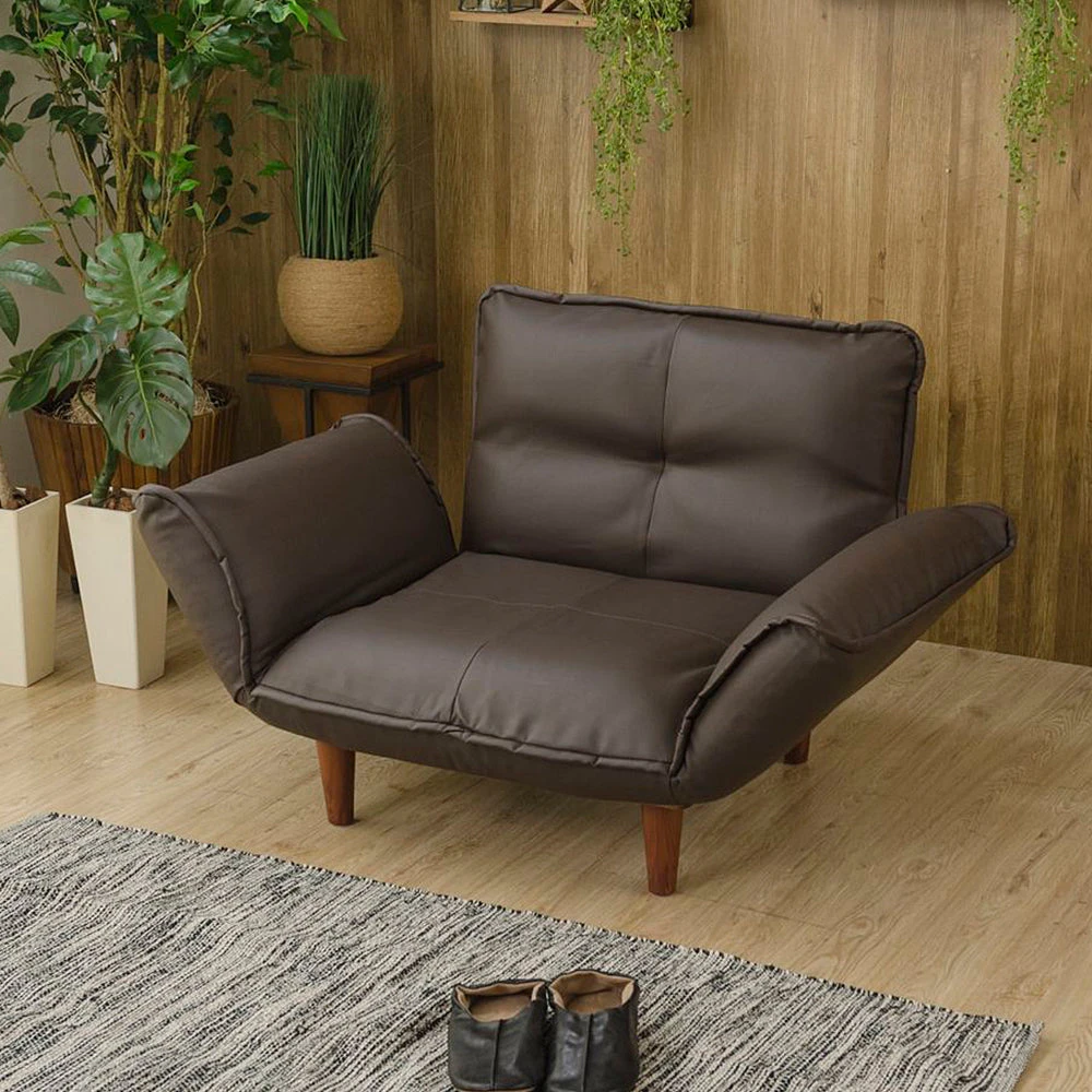 静かに角度を変えて姿勢を整える日本製のレザーソファ PVC ブラウン 1人掛け単品