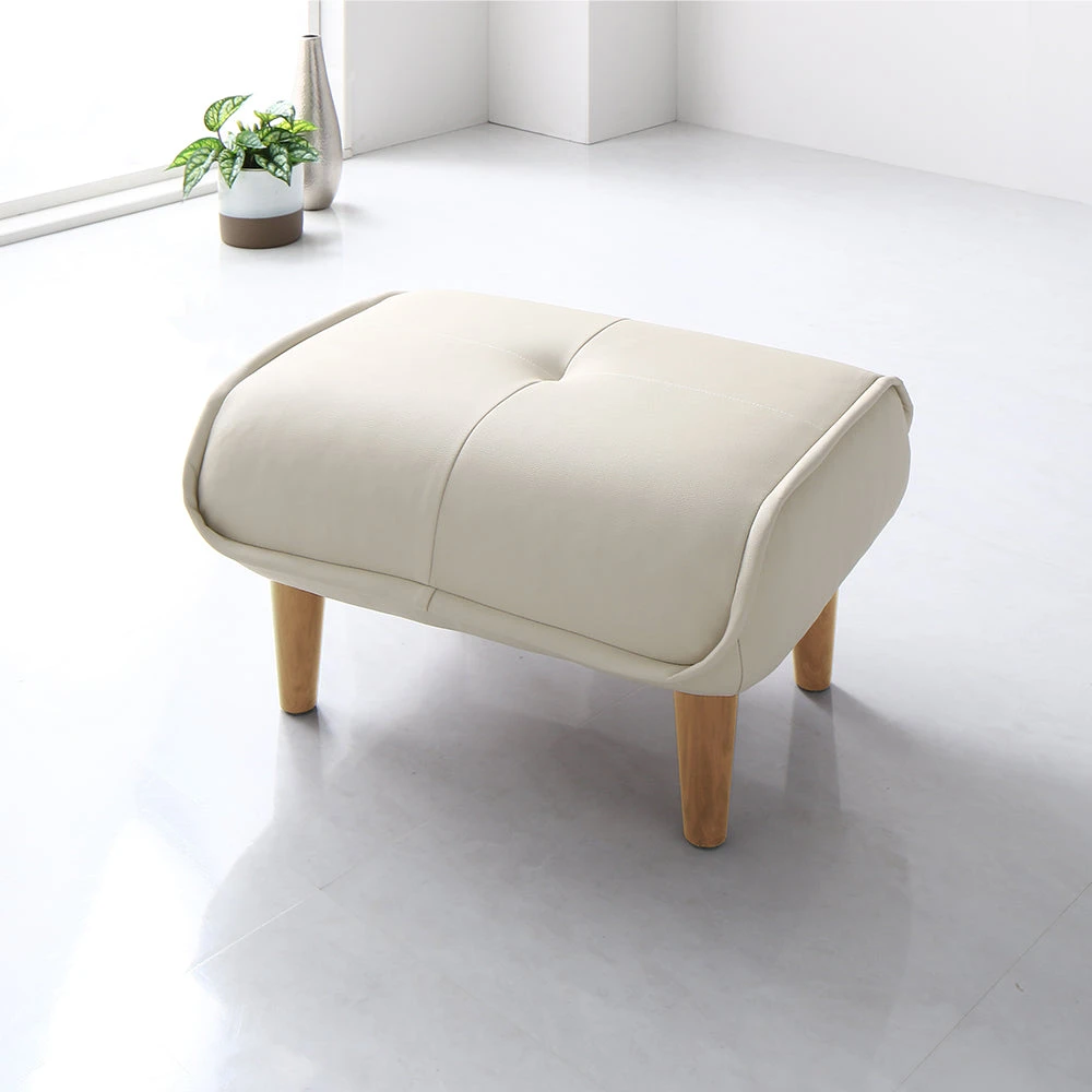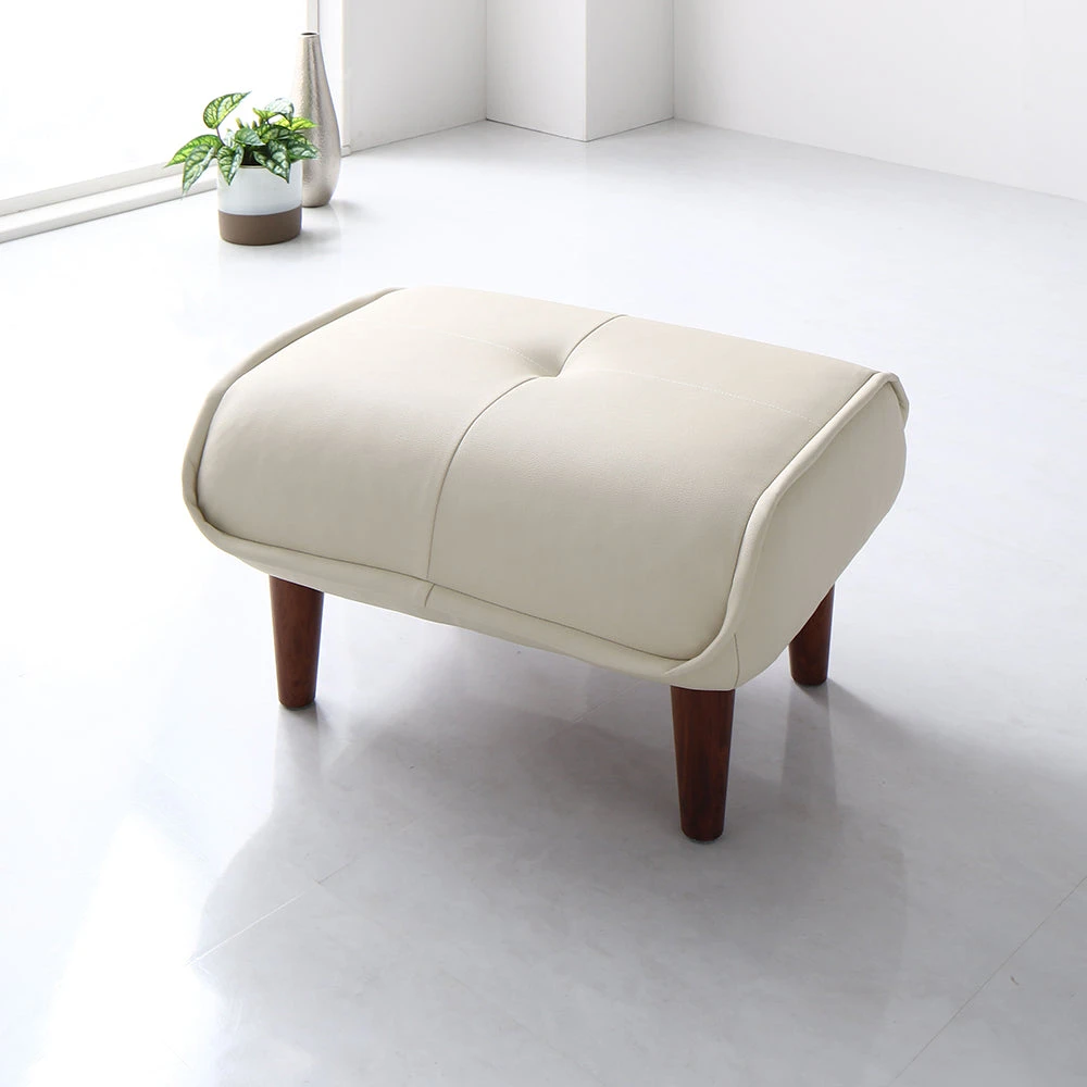 静かに角度を変えて姿勢を整える日本製のレザーソファ PVC アイボリー オットマン単品