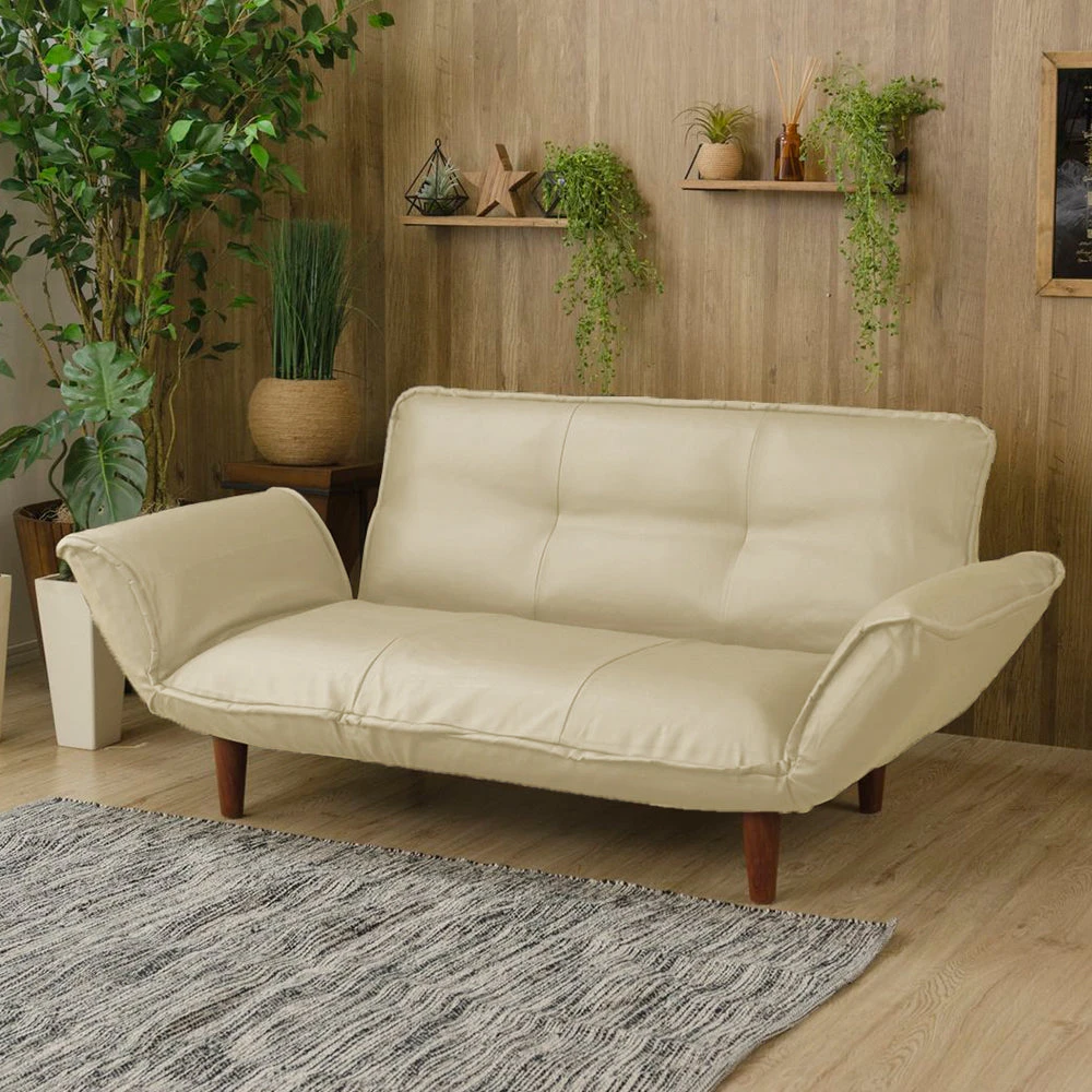 静かに角度を変えて姿勢を整える日本製のレザーソファ PVC アイボリー 2人掛け単品