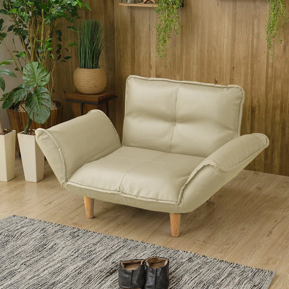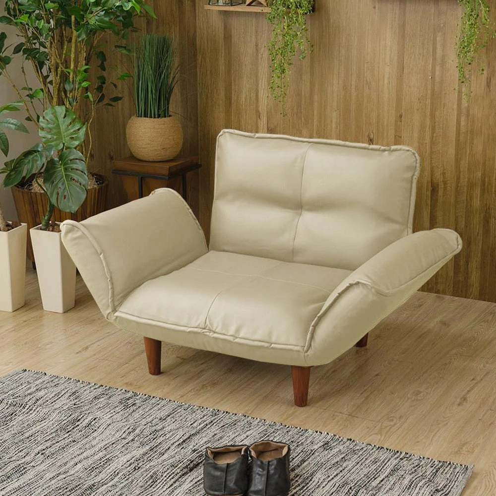 静かに角度を変えて姿勢を整える日本製のレザーソファ PVC アイボリー 1人掛け単品
