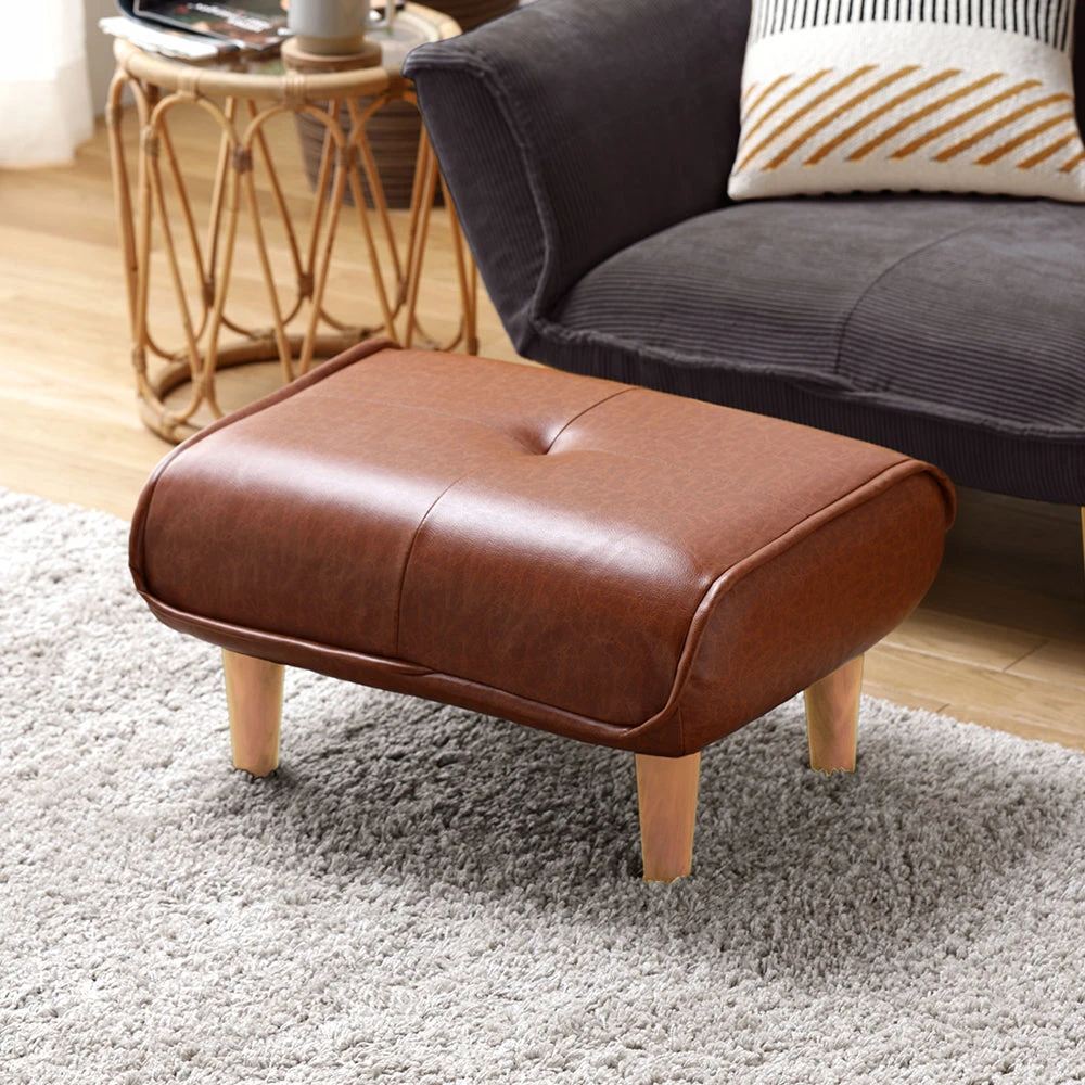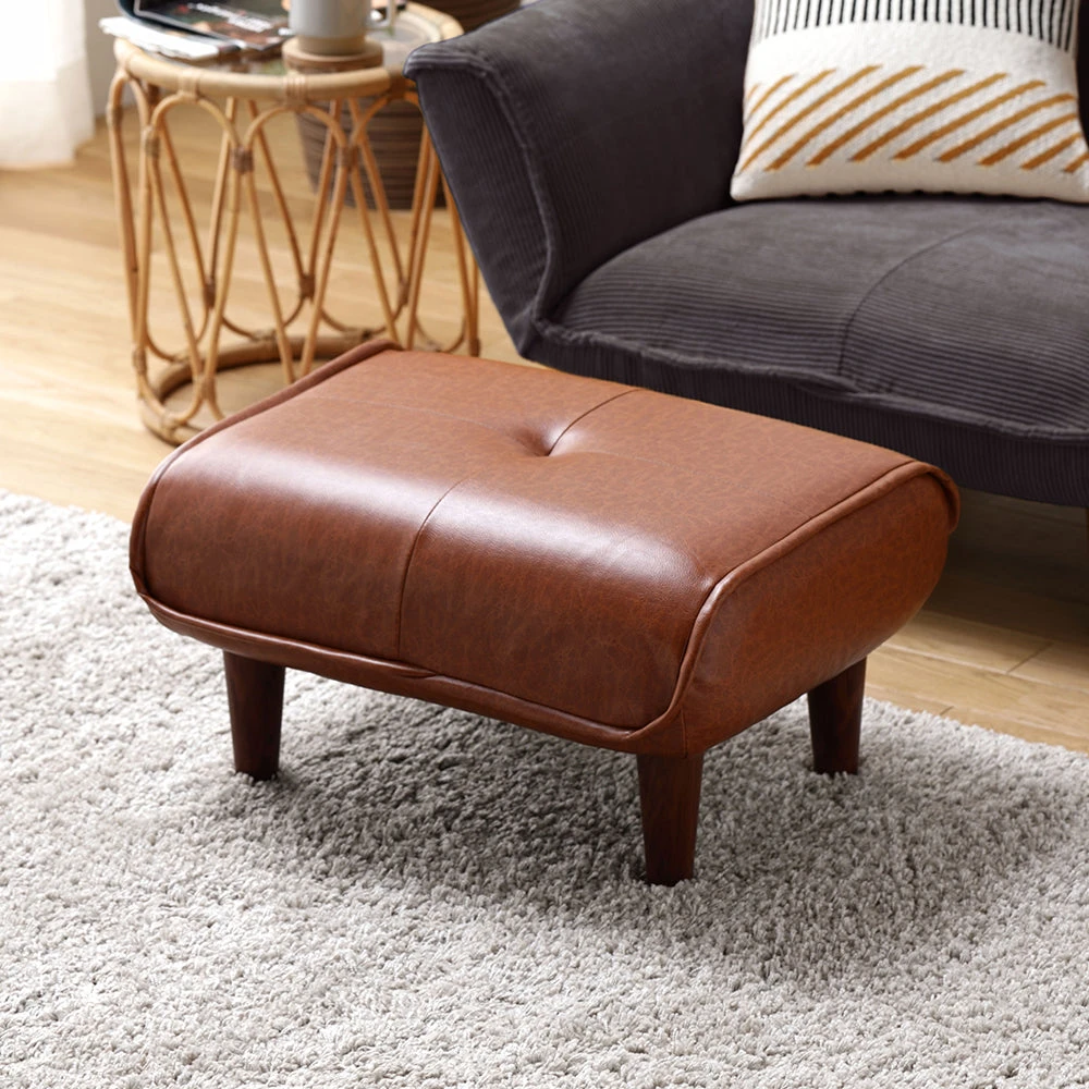 静かに角度を変えて姿勢を整える日本製のレザーソファ PVC ヴィンテージキャメル オットマン単品