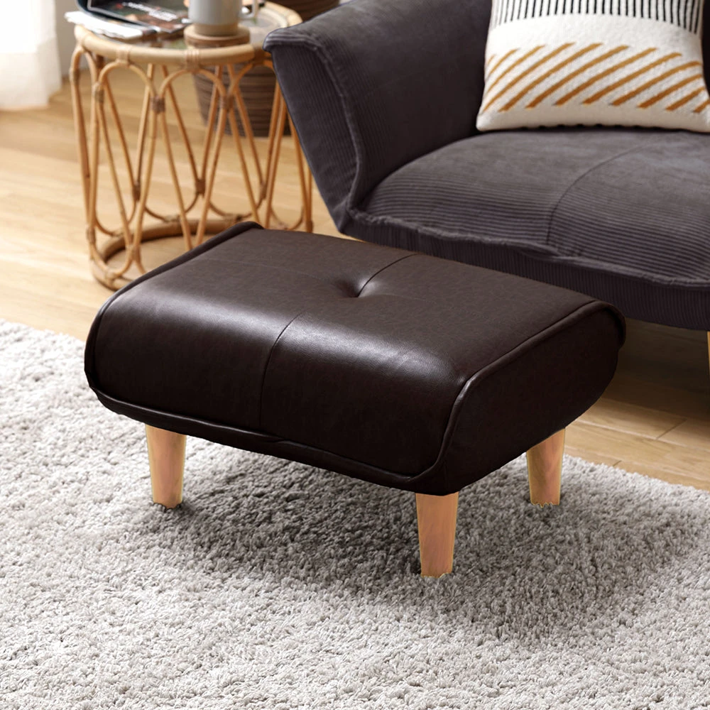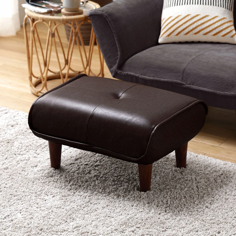静かに角度を変えて姿勢を整える日本製のレザーソファ PVC ヴィンテージダークブラウン オットマン単品