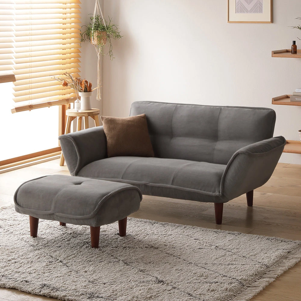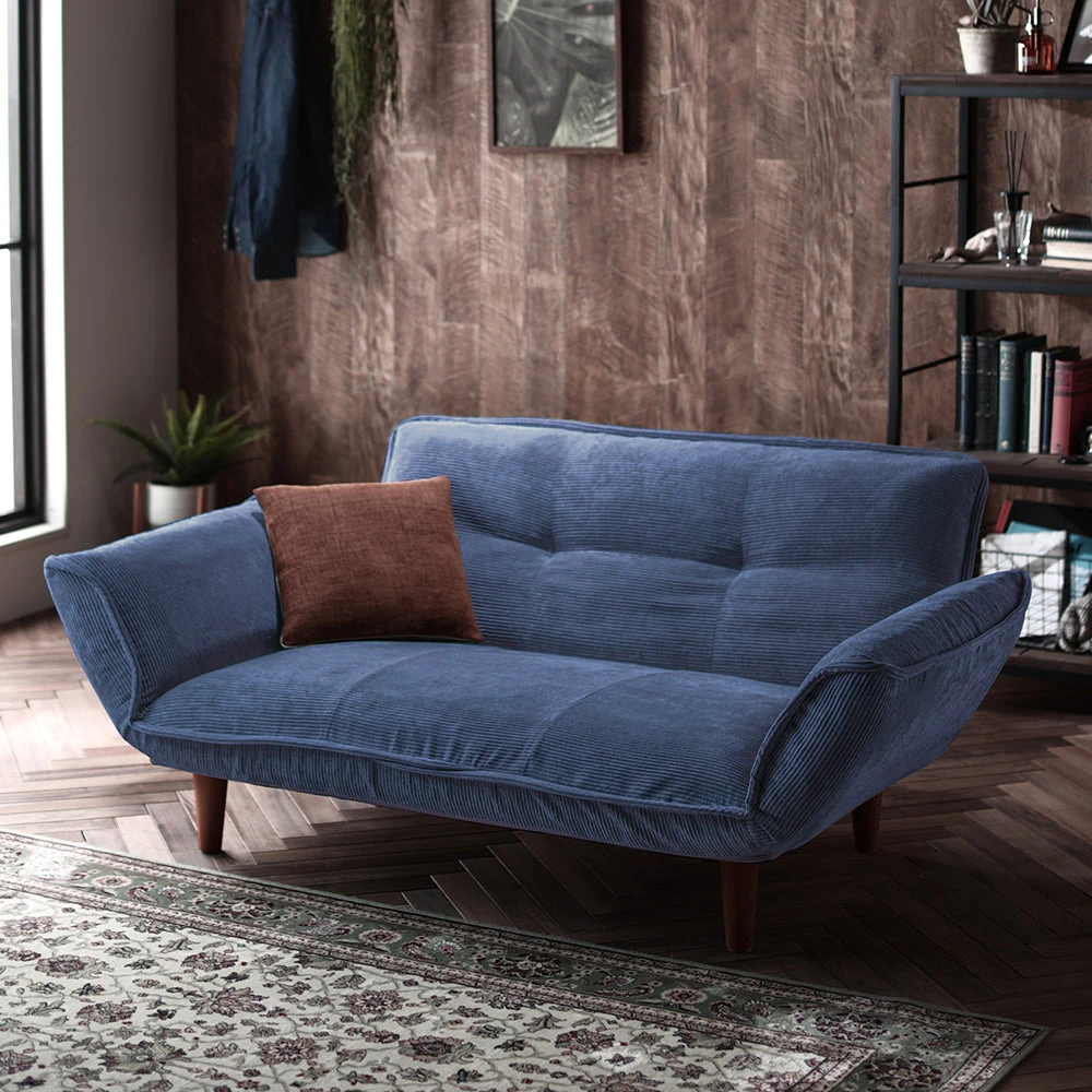 3静かに角度を変えて姿勢を整える日本製のレザーソファ コーデュロイ ブルー 2人掛け単品