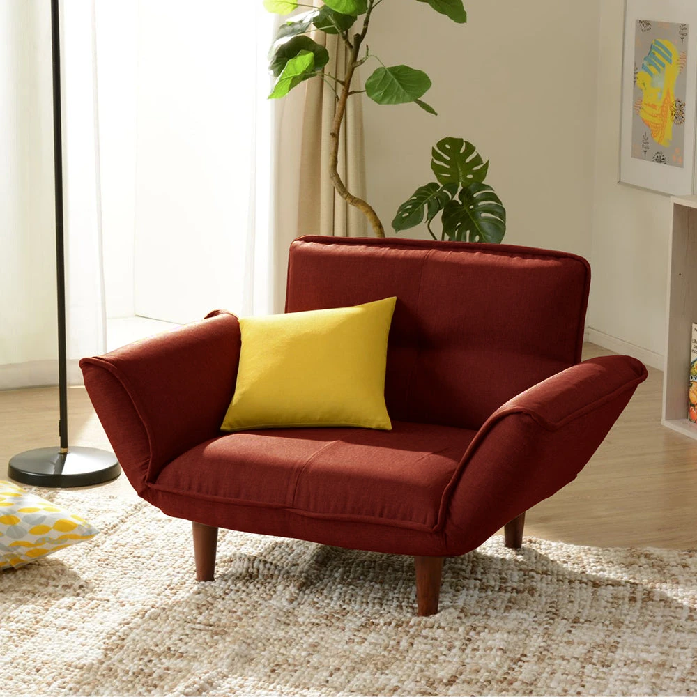 5静かに角度を変えて姿勢を整える日本製のレザーソファ タスク レッド 1人掛け単品