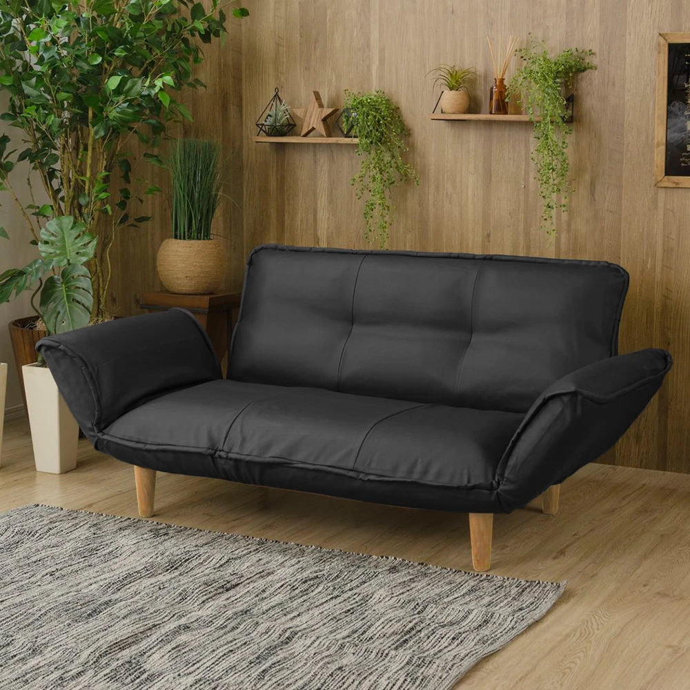 静かに角度を変えて姿勢を整える日本製のレザーソファ PVC ブラック 2人掛け単品