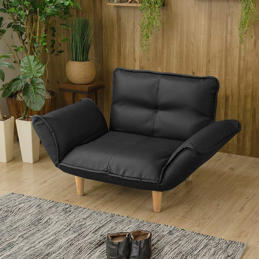 静かに角度を変えて姿勢を整える日本製のレザーソファ PVC ブラック 1人掛け単品