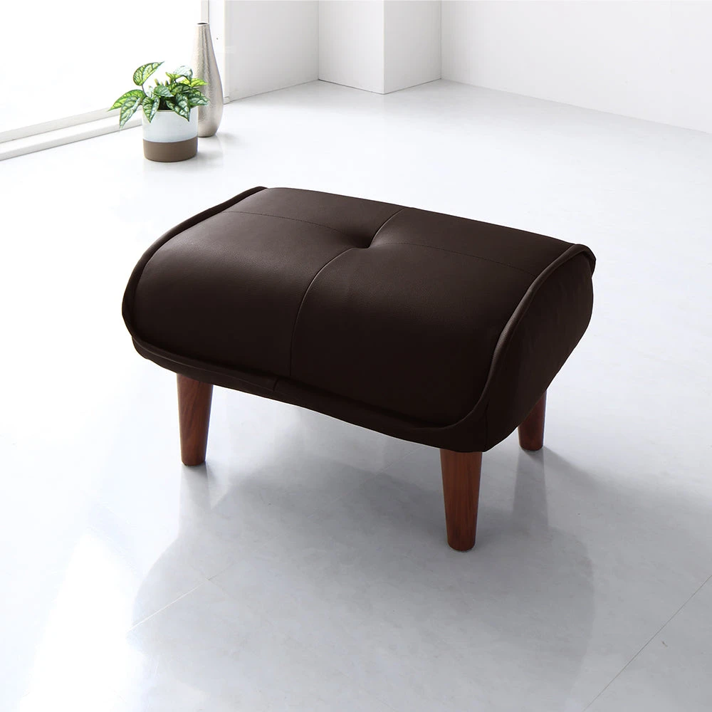静かに角度を変えて姿勢を整える日本製のレザーソファ PVC ブラウン オットマン単品