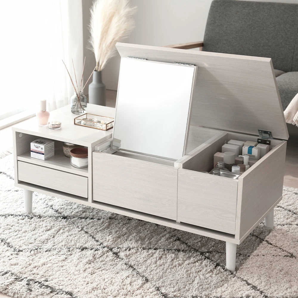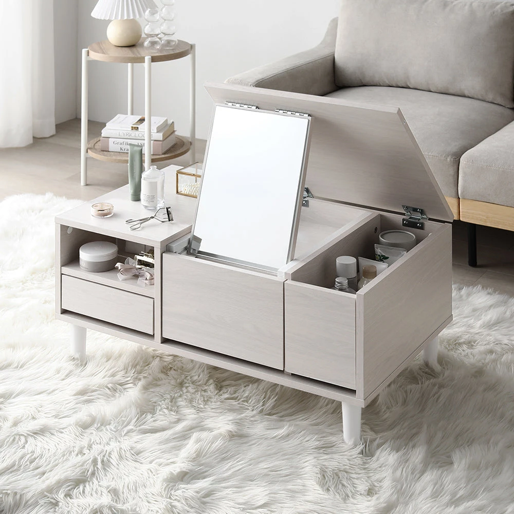大きな鏡と片づく収納で朝が整うドレッサー ストーンホワイト 幅95cm
