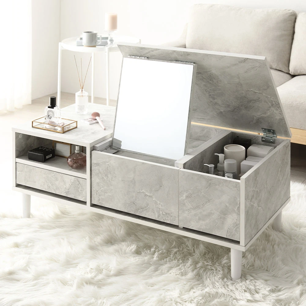 大きな鏡と片づく収納で朝が整うドレッサー チャコールグレー 幅95cm