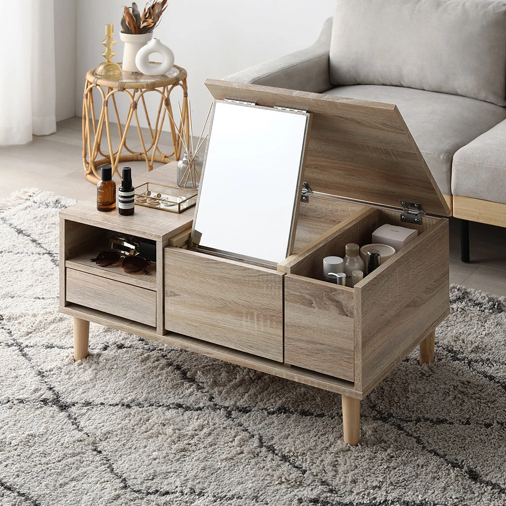 大きな鏡と片づく収納で朝が整うドレッサー ナチュラル 幅75cm