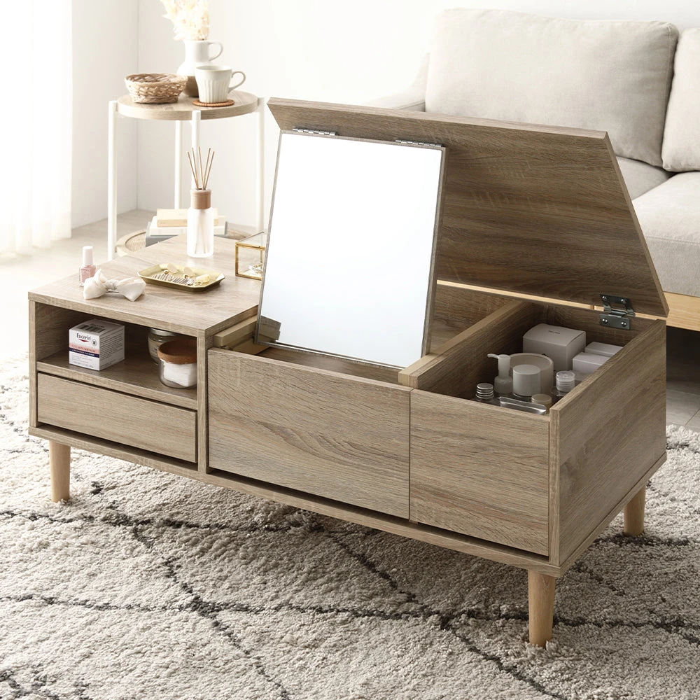 大きな鏡と片づく収納で朝が整うドレッサー ナチュラル 幅95cm
