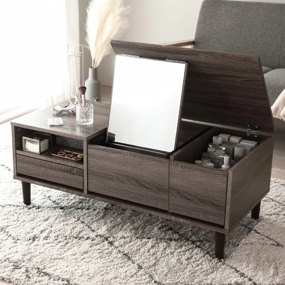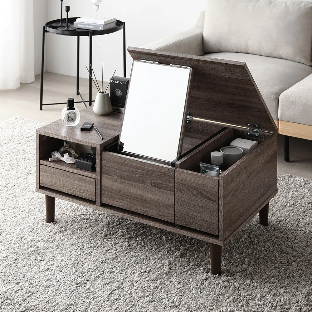 大きな鏡と片づく収納で朝が整うドレッサー チャコールグレー 幅75cm