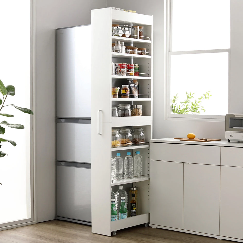 デッドスペースを収納化し、取っ手付きで扱いやすいすき間収納ラック ホワイト ハイタイプ(幅18cm)