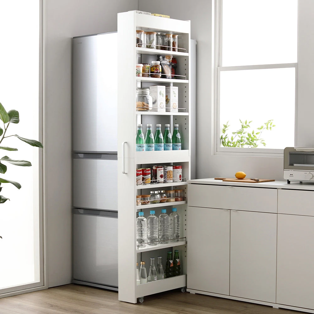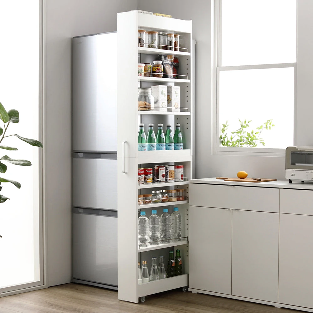 デッドスペースを収納化し、取っ手付きで扱いやすいすき間収納ラック ホワイト ハイタイプ(幅20cm)